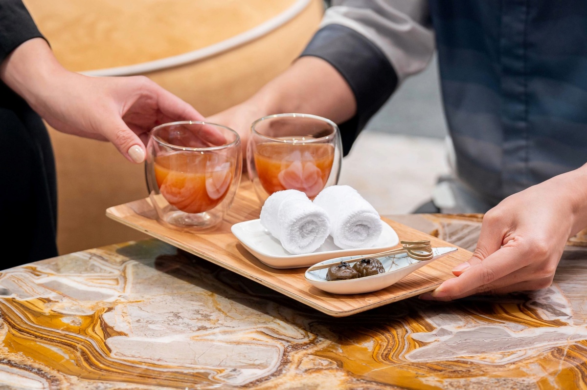 在漢來日月行館「梅之饗宴」旅程中,最重要的就是讓旅人細心感受「與梅相遇」的精緻體驗。迎賓時,奉上一杯日月潭溫醇紅茶與Q梅,為這趟旅程輕揭序幕;在茶屋的慵懶時光,細飲梅酒、嚐口梅果乾,享受季節流轉風情;晚餐時分,從入座喚醒味蕾的清爽梅子醋,到前菜與主菜「以梅入菜」的層層風味堆疊,再透過熱菜梅子雞等料理,讓箇中甜酸美味成為饗宴主角。