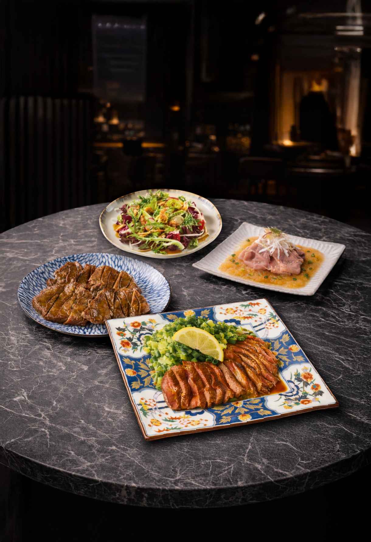 前菜包含「和風野菜沙拉」與「炭烤牛舌丸」,先以清爽蔬菜與炭香小點開場;冷盤提供二擇一:「胡麻冷涮牛舌」或可選「酸橘冷涮牛舌」,以不同風味走向呈現牛舌的清爽口感,胡麻路線偏濃香滑順,酸橘路線則更清新開胃,讓聚餐從第一口就有日式的俐落感。接續的逸品更是套餐亮點,包含特選「牛舌刺身」與「清燉厚切牛舌」,前者強調口感與鮮度的層次,後者則以溫潤湯頭把厚切牛舌燉至柔軟入味,呈現牛舌在炭烤之外的另一種深度。