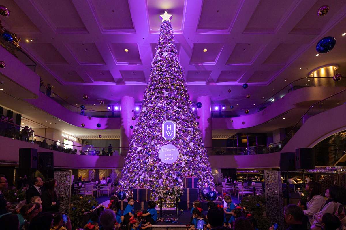 台北晶華酒店於11月27日率先為中庭矗立的聖誕樹舉辦點燈儀式,開啟了今年的佳節歡慶活動 。這棵近12公尺高的聖誕樹是全台飯店室內最高 ,今年首度與珠寶品牌海瑞溫斯頓(Harry Winston)攜手佈置 ,樹身綴滿2,000顆象徵品牌色的藍球與金球 。
