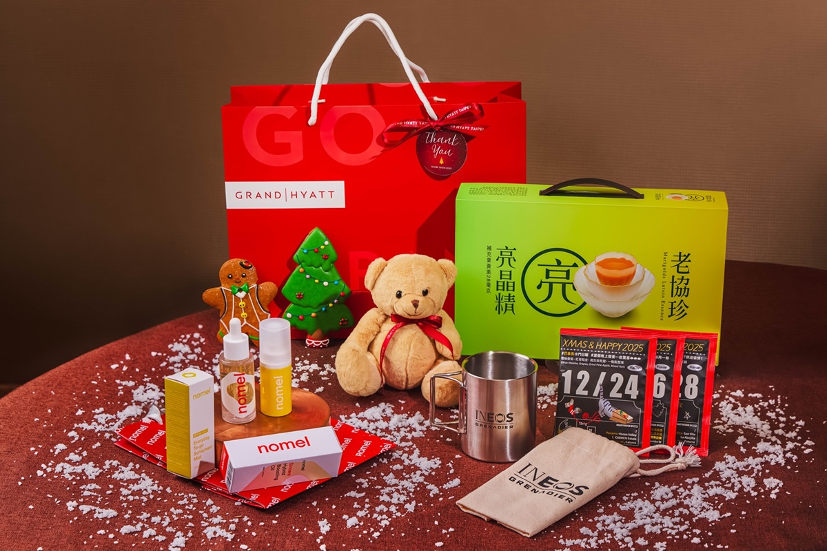 酒店特別攜手 老協珍、INEOS Grenadier Taiwan 及 nomel 三大人氣品牌 ,限量推出「愛心公益」聖誕禮袋 。禮袋內容物包含總價值超過 4,500 元 的精選好物,如老協珍亮晶精禮盒與 nomel 雙重煥顏油等 。每袋僅售 1,500 元,部分收益將捐贈給「財團法人罕見疾病基金會」,讓愛心點亮更多幸福笑容 。