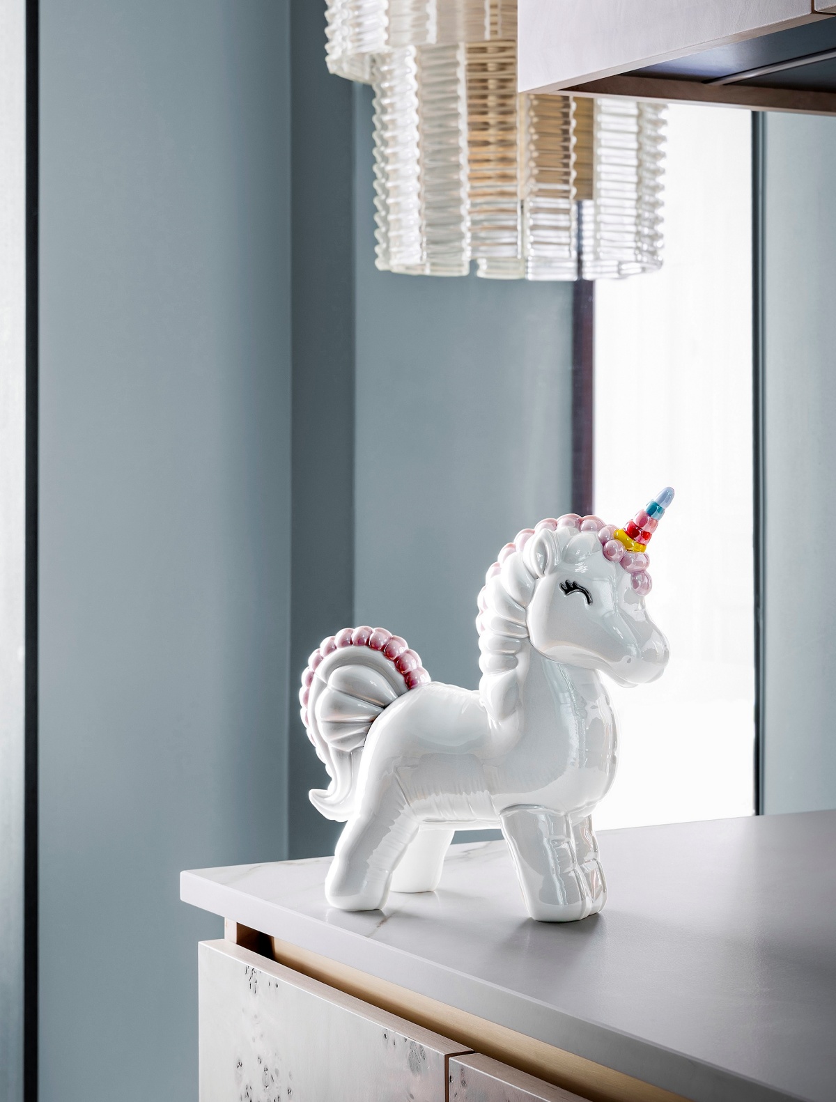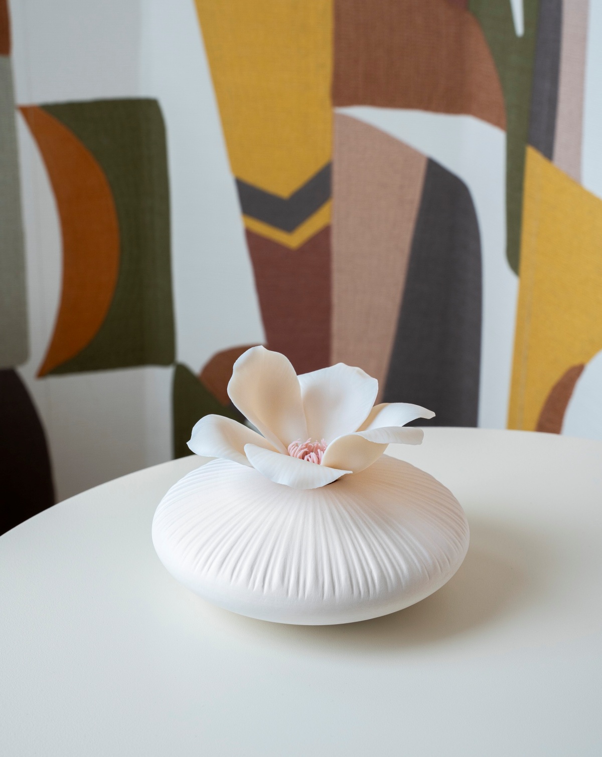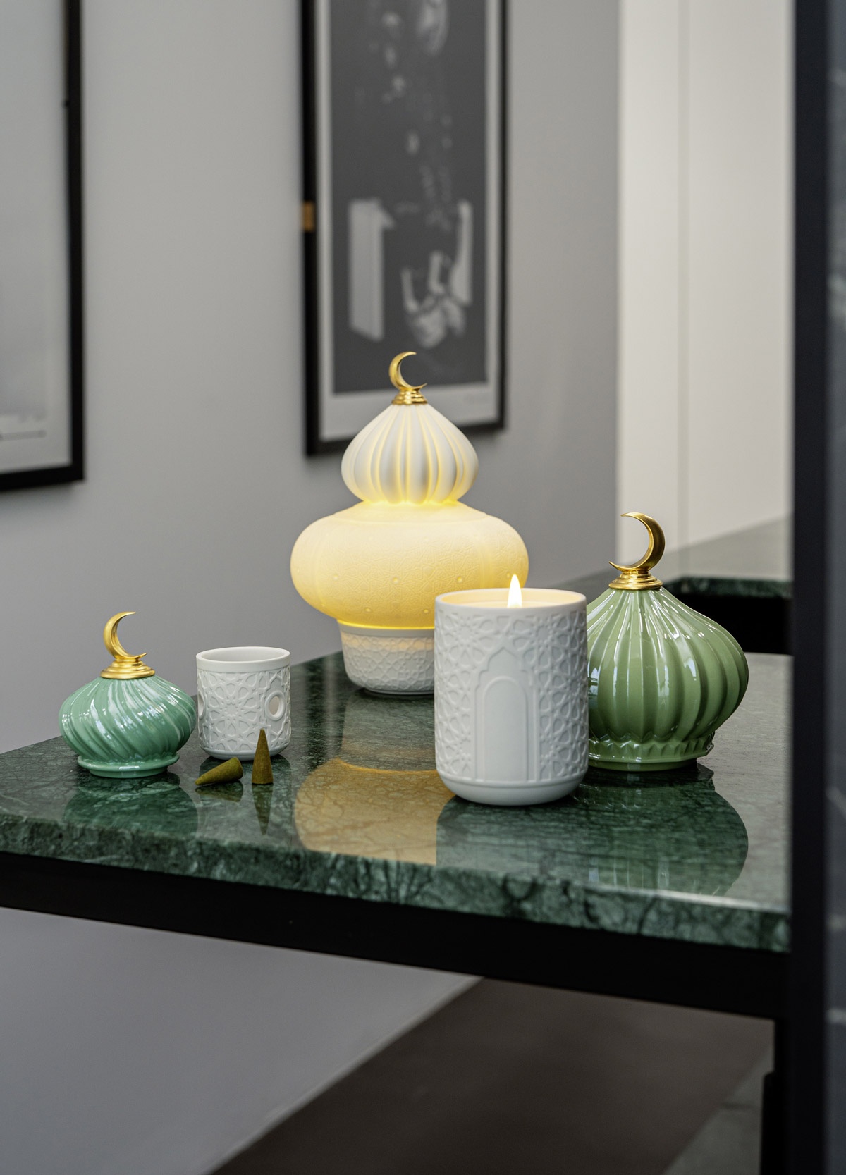 在當代設計面向,《獨角獸》以充氣氣球為概念,圓潤比例與柔和色彩詮釋輕盈童趣,為空間帶來活潑且具設計感的氛圍;《花道》作品則結合日本花道精神與擴香瓷設計,LLADRÓ獨步全球的手工瓷花,由捏花師一瓣瓣手工捏製而成,底座的擴香瓷只需在表面滴上心儀香氛,即可營造靜謐且富儀式感的生活體驗。