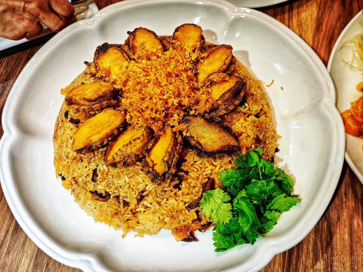 其中麻油鮑豚飯融合海陸雙珍、溫補養生與米飯香氣三大亮點,以鮑魚及黑豬頸肉為食材,採用臺灣雲林黑麻油經主廚以溫火炒香(以油養香)、鹵水浸煮(保鮮入味)、干貝雙工序(軟煮+炸酥)、乾炒糯米(傳統油飯技法)、高溫炸封(鎖住肉香)、回蒸定型、成品擺盤等七大工序,將傳統麻油飯升級為一道海陸奢華版讓賓客驚艷的主食亮點菜。初芯初蒔除了將此道餐點置入餐廳高級宴席桌菜外,今年特別回饋嘉賓將此道料理列入2026年農曆春節年菜。