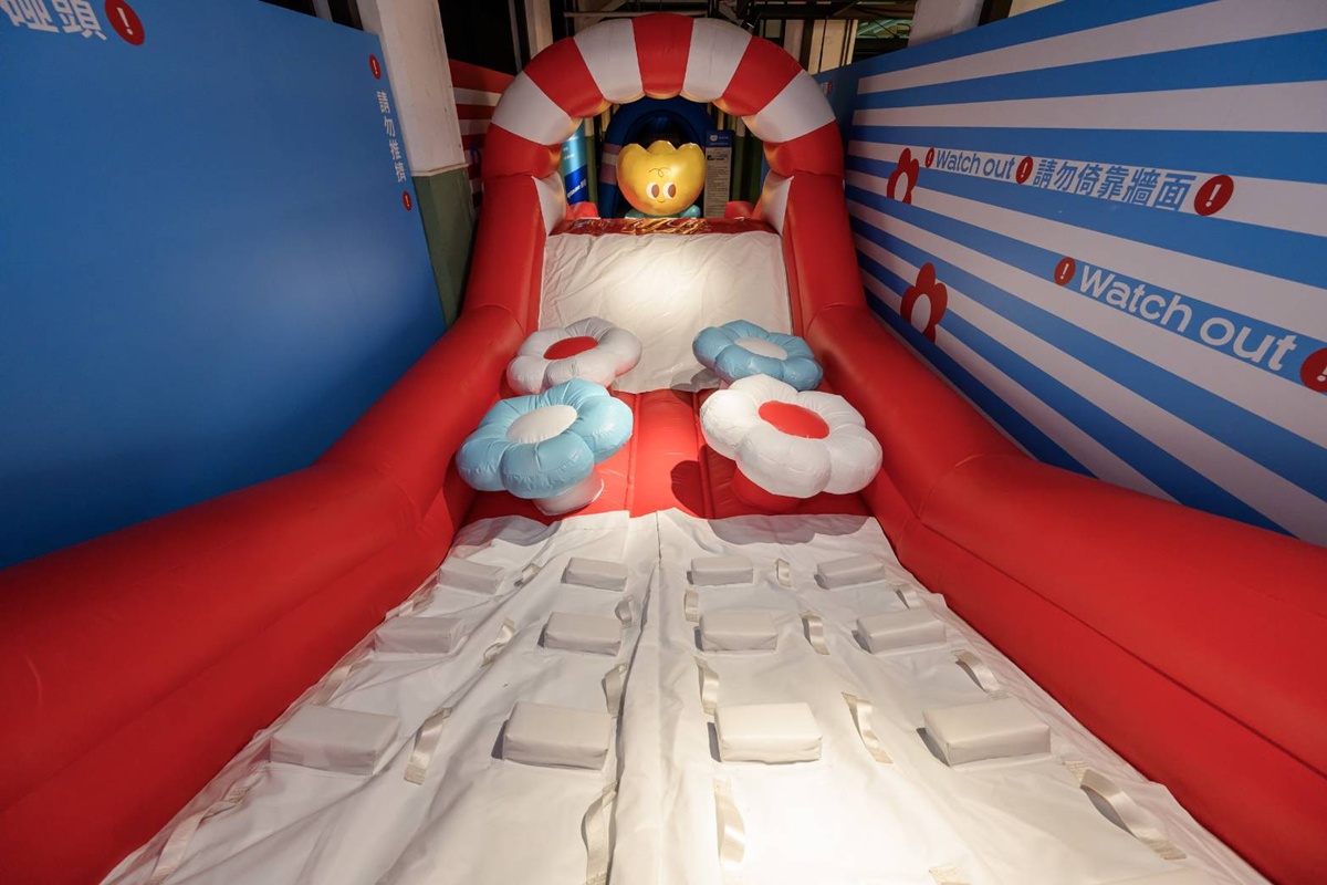 由台灣樂作創益協會策劃的「Happy Garden 樂作奇想花園」,以「玩出同理心」為核心概念,將照護與陪伴的真實故事轉化為互動式氣墊關卡。展區中包含七大主題空間與四大巨型氣墊設施,從「花園大廳」的童心滑梯到「夜訪花園」的光影迷宮,每個關卡皆模擬身障者、長者或自閉症者的日常挑戰,讓孩子在遊戲過程中學習理解與包容。