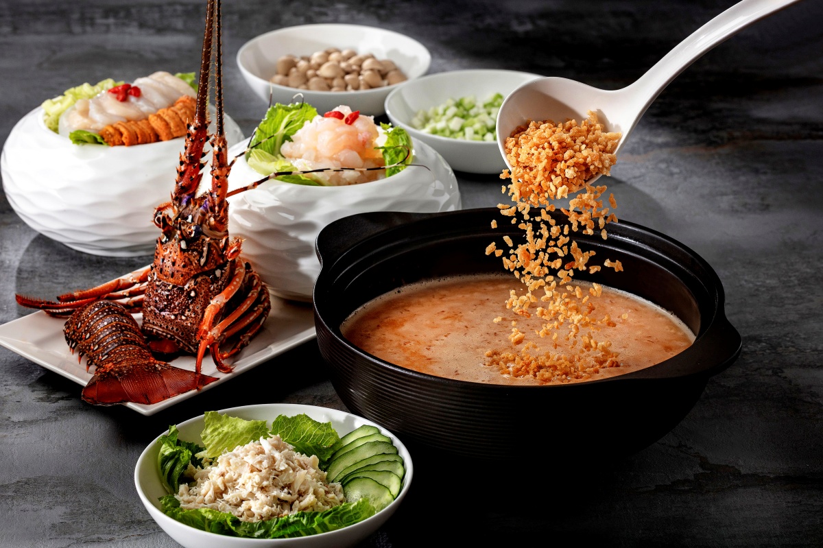 另有龍蝦泡飯珍饌六人餐每套8,280元+10%,龍蝦泡飯以龍蝦、沙公與豬骨熬製金黃濃湯,搭配現沖炸香米,再鋪陳海膽、干貝與蟹身肉,極致奢華。另有景觀包廂桌席,每桌10人23,800元+10%起,滿足重視隱私與聚會氛圍需求。