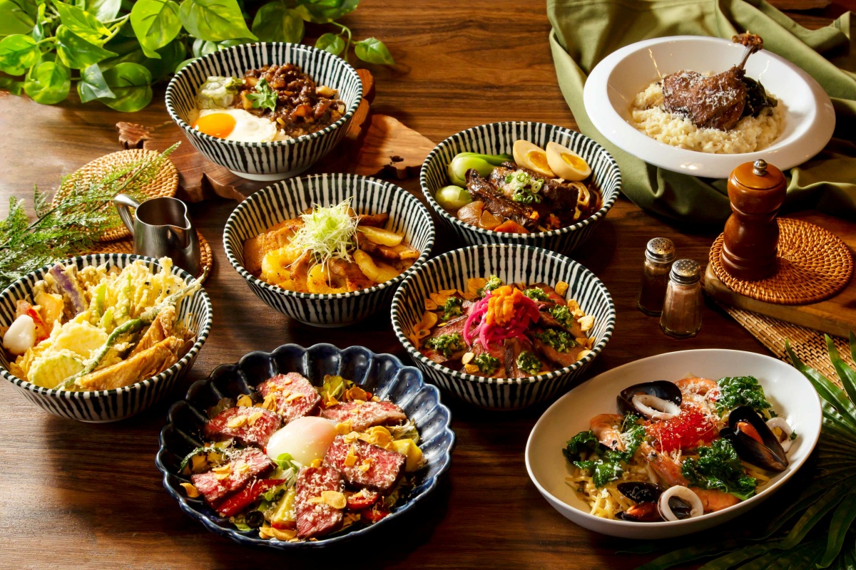 捷絲旅台南虎山館過年特定餐期推出新春聚會「節慶菜單」,包含海膽鮮蝦義大利麵、西瓜綿油封鴨腿燉飯及燒烤牛小排丼飯等多樣選擇。