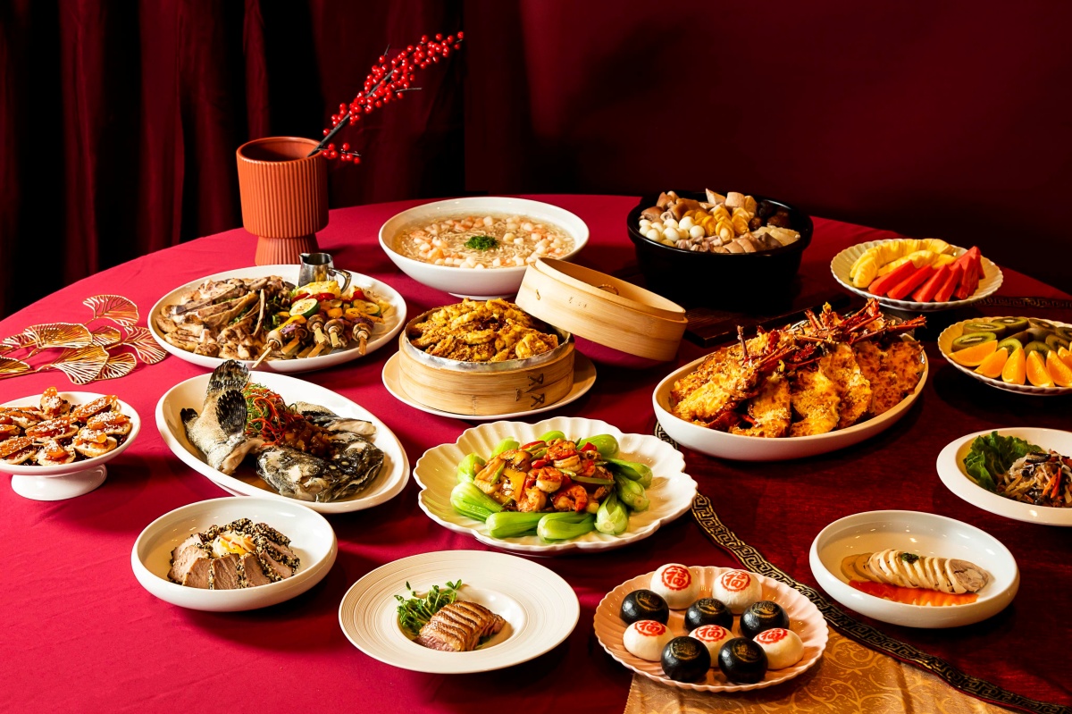 位於飯店一樓的 「捷食藝」餐廳,過年期間主打溫馨小型的傳統家宴,除夕至初三午、晚餐時段推出適合十人享用的「中式宴席」,十道應景佳餚以年節吉祥寓意為主軸,包含象徵榮華富貴的「金沙焗烤龍蝦」、寓意步步高升的「椒鹽軟殼蟹米糕」,以及象徵百福匯聚的「花膠極品佛跳牆」…等,透過一道道料理傳遞對來年富足、健康與繁榮的祝福,為團圓時光增添儀式感。