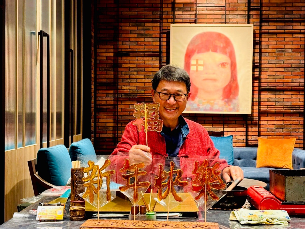 捷絲旅台南虎山館大年初三邀請畫糖叔叔現點現畫製作造型糖。