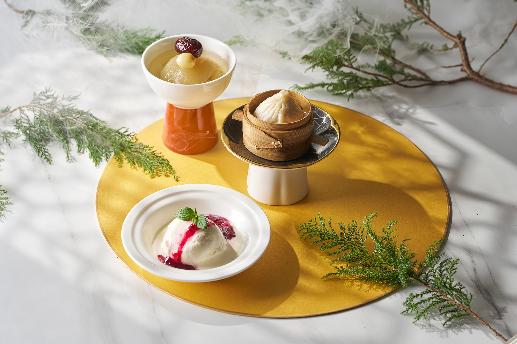 、銀耳桂圓燉雪梨(上)、金樽火焰冰淇淋(下)三道點心為賓客畫下完美句點。(台北福華大飯店提供)-1.jpg)