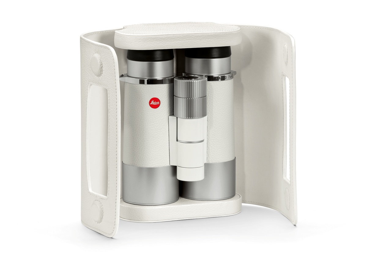徠卡Ultravid「白浪版」的獨家設計還包括為其打造的同色系配件,包括優質皮套、真皮背帶等。可折疊皮套如軟布般裹覆鏡身,內置磁扣隨即相合。如此一來,即便是放置在柚木、漆器等優質物件的光滑表面,望遠鏡亦能安放無憂,無滑落風險。