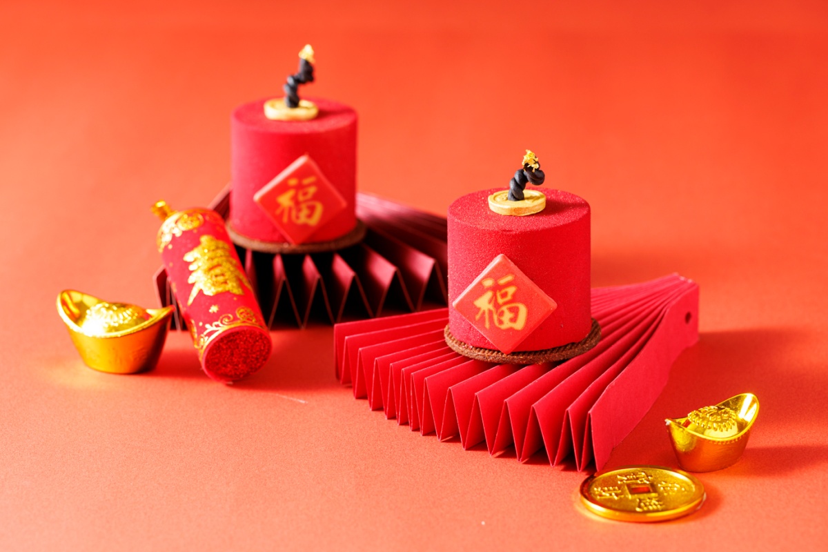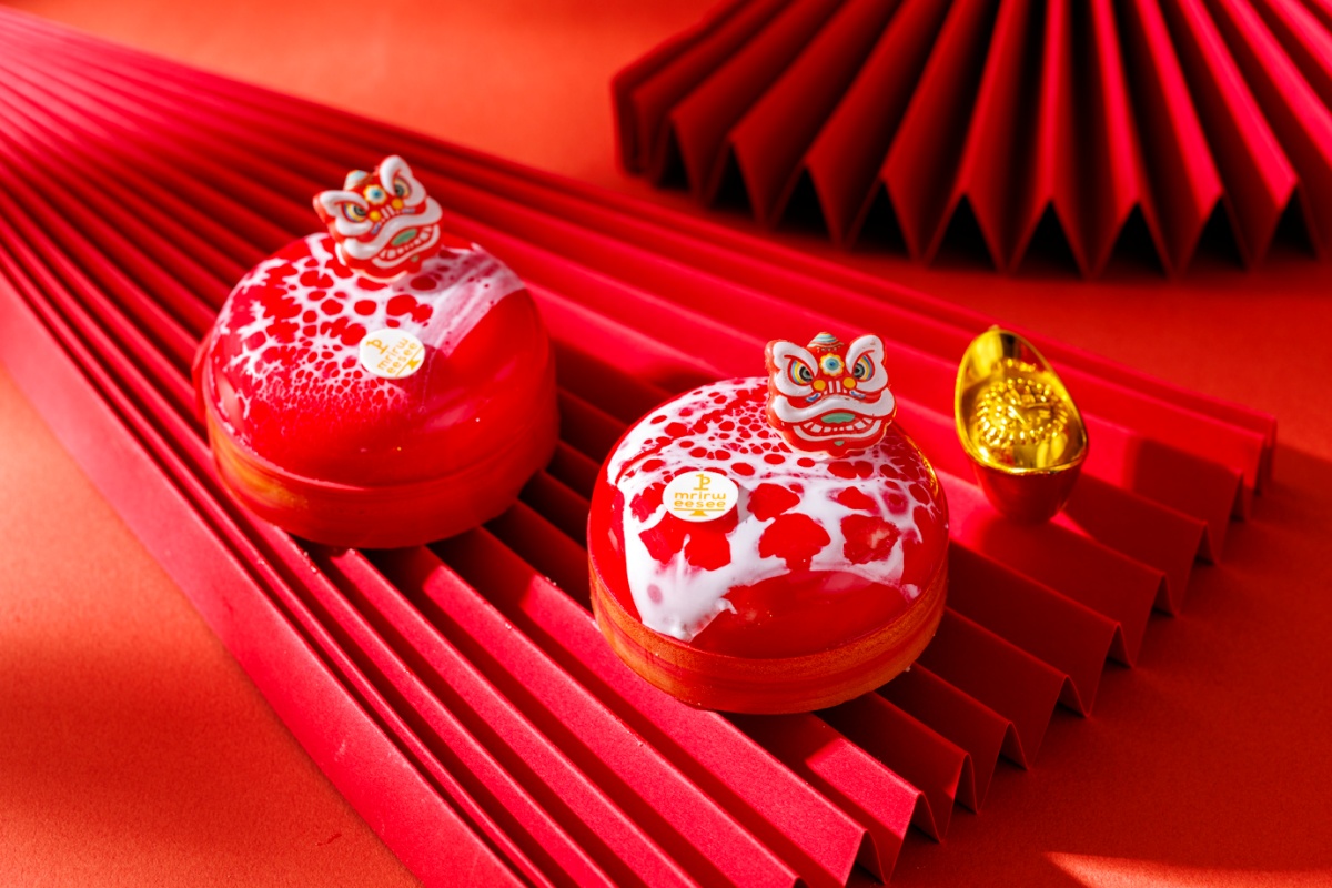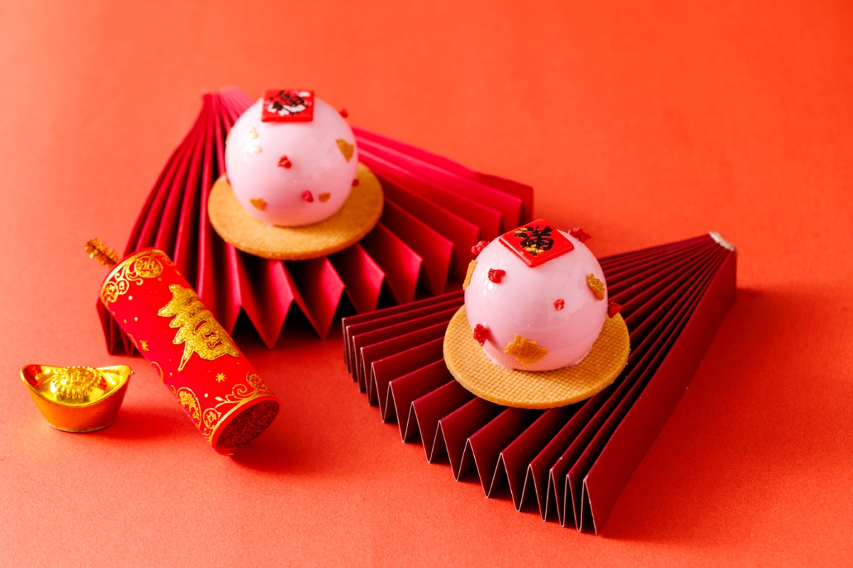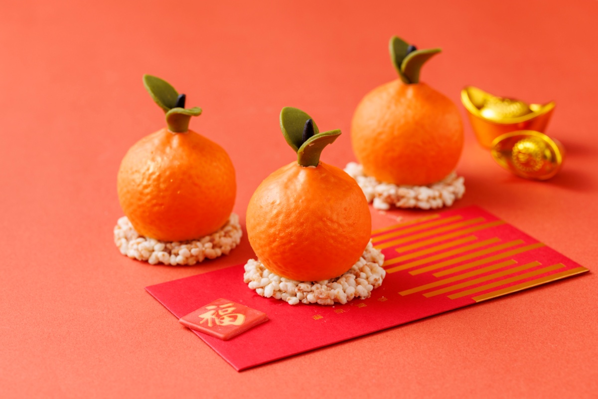 同系列還有以喜慶鞭炮為造型的「咖啡洋梨」,將洋梨的清甜、馬斯卡邦的柔滑與咖啡慕斯的深韻巧妙融合;以及外型討喜、寓意大吉大利的「旺來橘祥」,以鳳梨慕斯搭配橘瓣與橘子醬,明亮果香在舌尖綻放,為新的一年討個好彩頭。