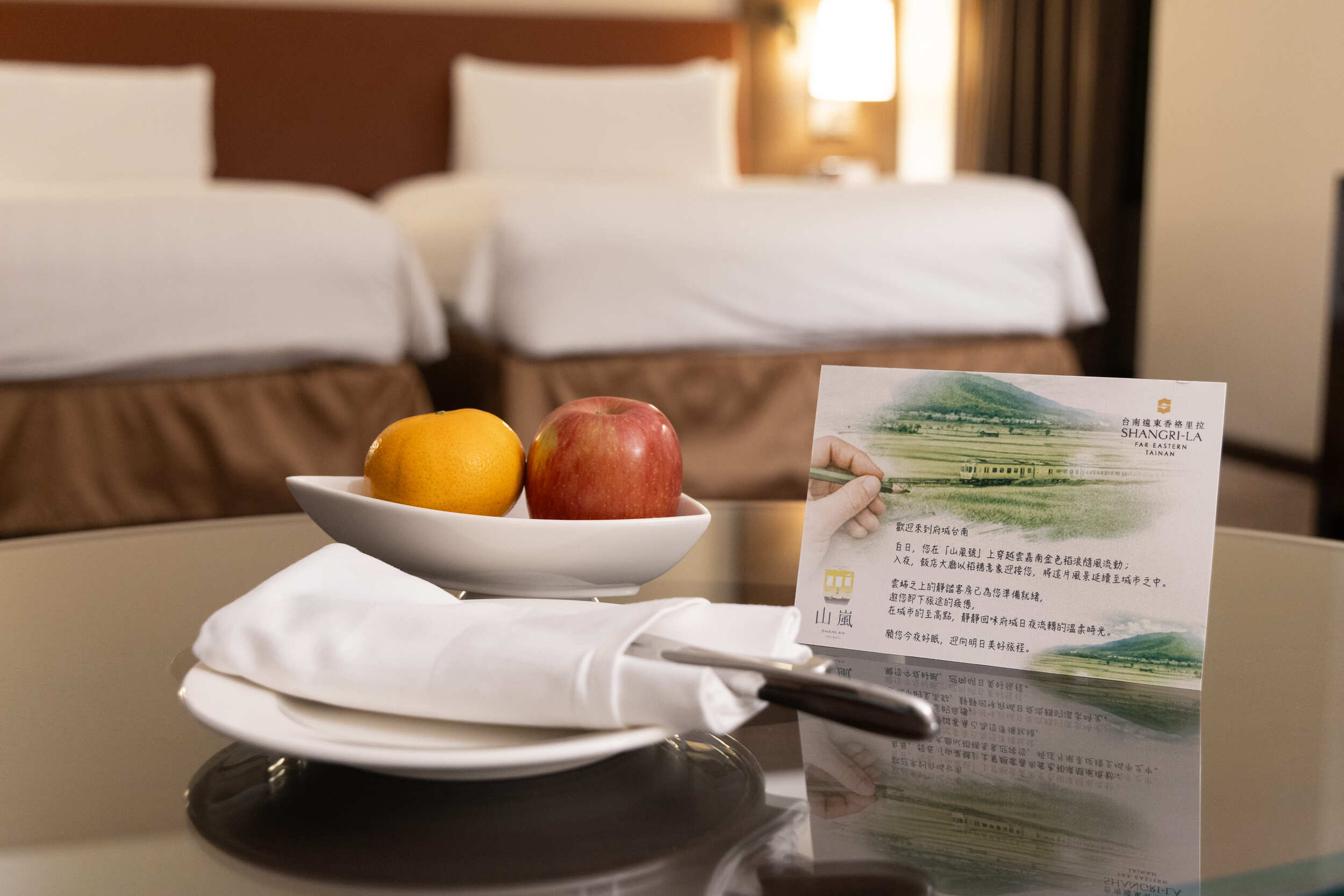 台南遠東香格里拉飯店緊鄰台南火車站,步行約3分鐘即可抵達,地理位置對搭乘鐵道旅行的旅客相當便利。對鐵道迷而言,更是能近距離觀察列車進出、感受城市與鐵道交織節奏的理想落腳處。飯店大廳以「黃金的豐收」為設計概念,融入雲嘉南平原稻浪意象,讓旅程從列車月台一路延伸至住宿空間,營造兼具在地特色與國際風格的第一印象。在住宿規劃上,飯店提供高樓層景觀房型,旅客可於房內俯瞰府城日夜交織的城市風景。白天遠眺街廓與城市天際線,夜晚則被古都燈火溫柔包圍,部分房型更可遠望鐵道路線,讓旅宿本身成為欣賞城市節奏的一部分,也為鐵道旅行增添獨特的觀景視角。