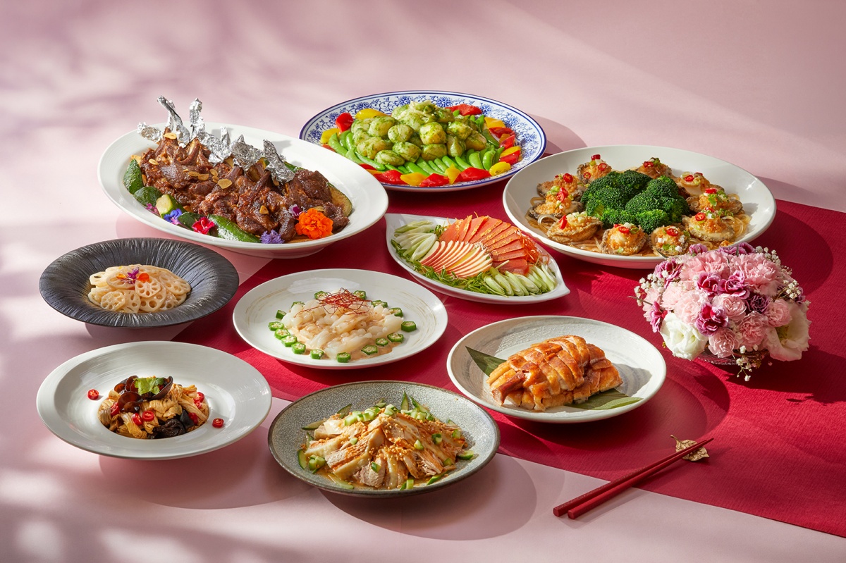 在料理呈現上,「明宮粵菜廳」由主廚匠心演繹經典粵菜,精選「明宮迎賓六味盤」、「XO醬翡翠鮑魚蝦球」、「黃金蟲草花膠雞」、「仙露清蒸海石斑」與「蒜香紅酒牛小排」等佳餚,融合傳統底蘊與創新手法,層層堆疊味覺驚喜,並以精緻甜點作結,每桌再加贈精美小禮,增添節日儀式感。