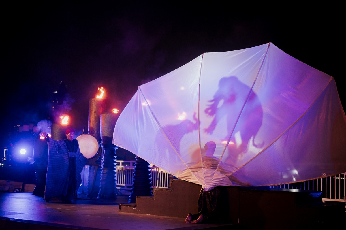 大皮影舞劇以傳統雕刻皮影為媒介,在光影照映下重現泰國文化的靈魂與節奏,是 Sala Lakorn 最具代表性的橋段之一