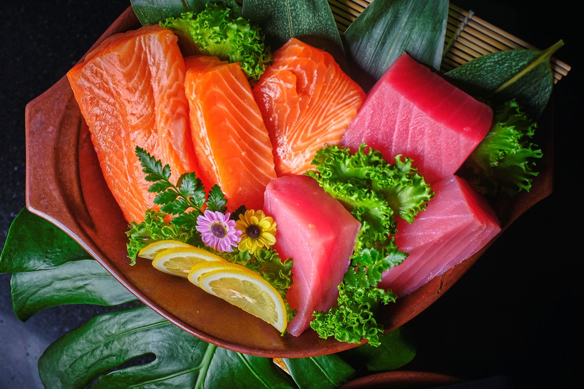 色澤飽滿的生魚片盛盤象徵味覺前奏,讓 Sala Lakorn 的國際自助盛宴在視覺與味蕾間同時綻放。