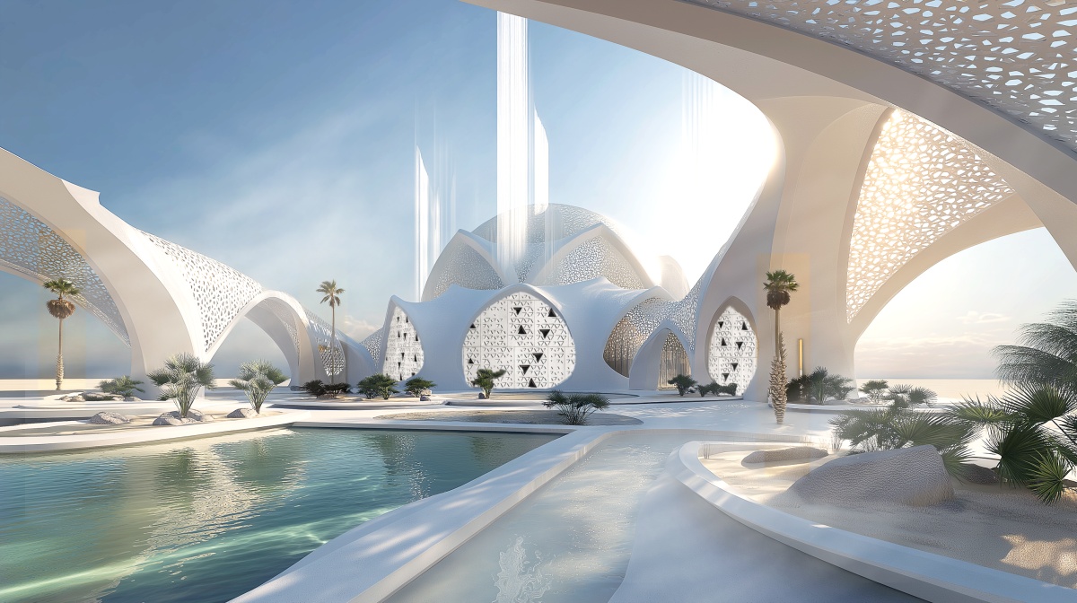 沙烏地工程師暨數位藝術家 Mona Algwaiz,專注於人工智慧、文化遺產與未來設計的交會領域。她透過創作重塑地景、建築形式與集體記憶,將熟悉場域轉化為未來視覺敘事,在科技、設計與文化故事之間開拓新實踐,為沙烏地的建成與自然環境描繪全新未來。