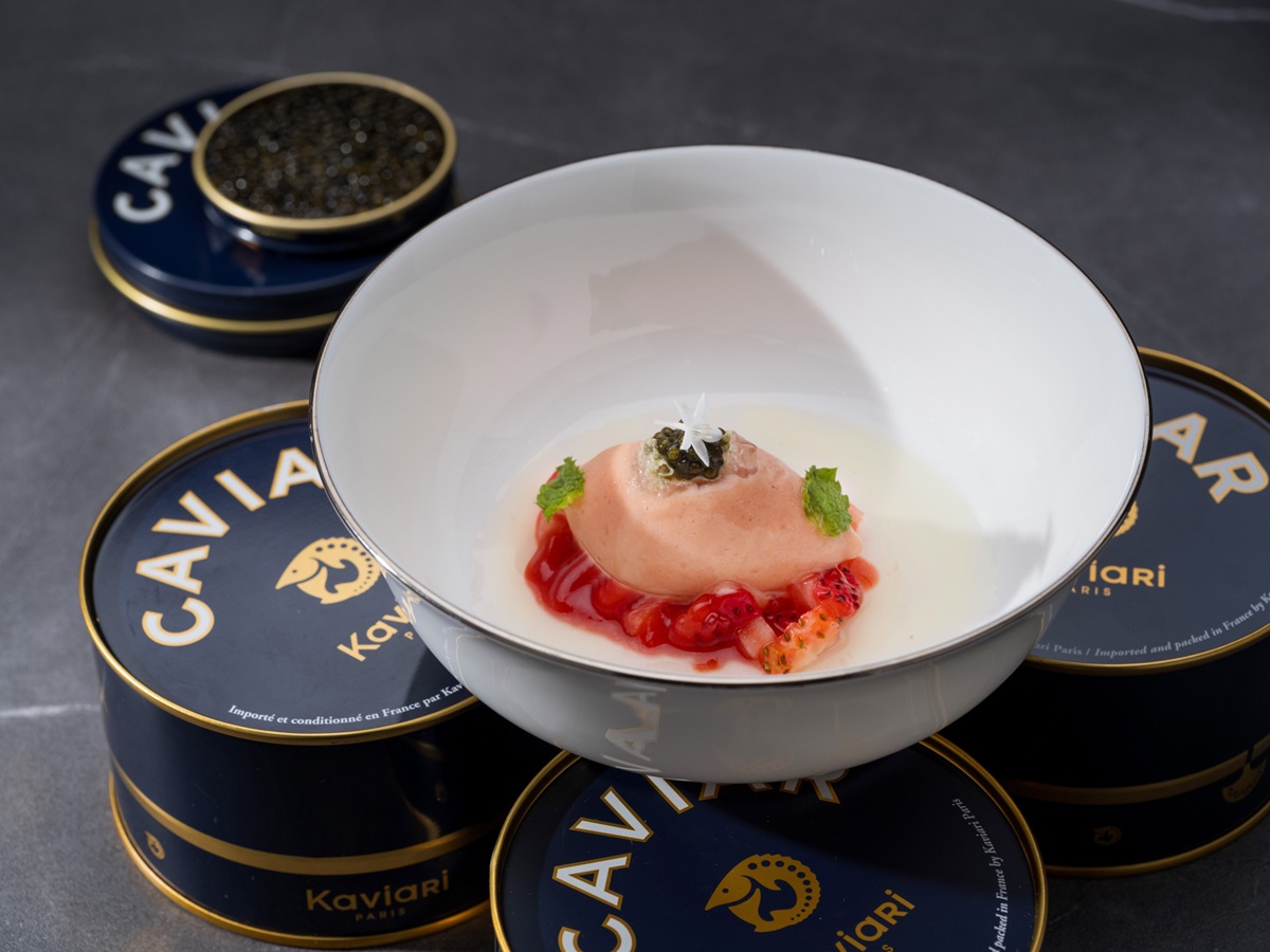 這場限定奢華晚宴以「酒窖迎賓」的三款頂級魚子醬品鑑揭開序幕,讓賓客能純粹鑑賞「貝魯嘉」的細緻奶油香、「奧賽嘉」的榛果與海藻層次,以及「薩魯加」的濃郁海潮鹹鮮。主廚 Mario Quarta 憑藉其匠心獨運的當代創意,將這三款全球知名的頂級食材融入經典義式技法,體現了風味昇華、口感映襯的食藝哲學。