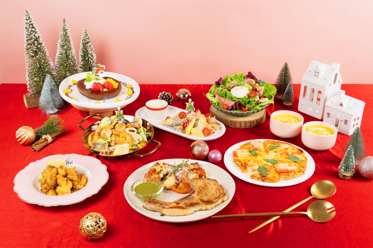 微兜於今年12/4–12/25出包含戰斧豬排、海鮮燉飯、限量瓦帕鬆餅的節慶套餐,各式沙拉、濃湯、披薩、甜點自由選配,派對等級的豐盛餐桌最適合跟喜歡的人一起享用。