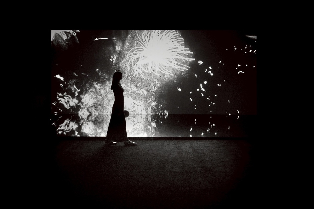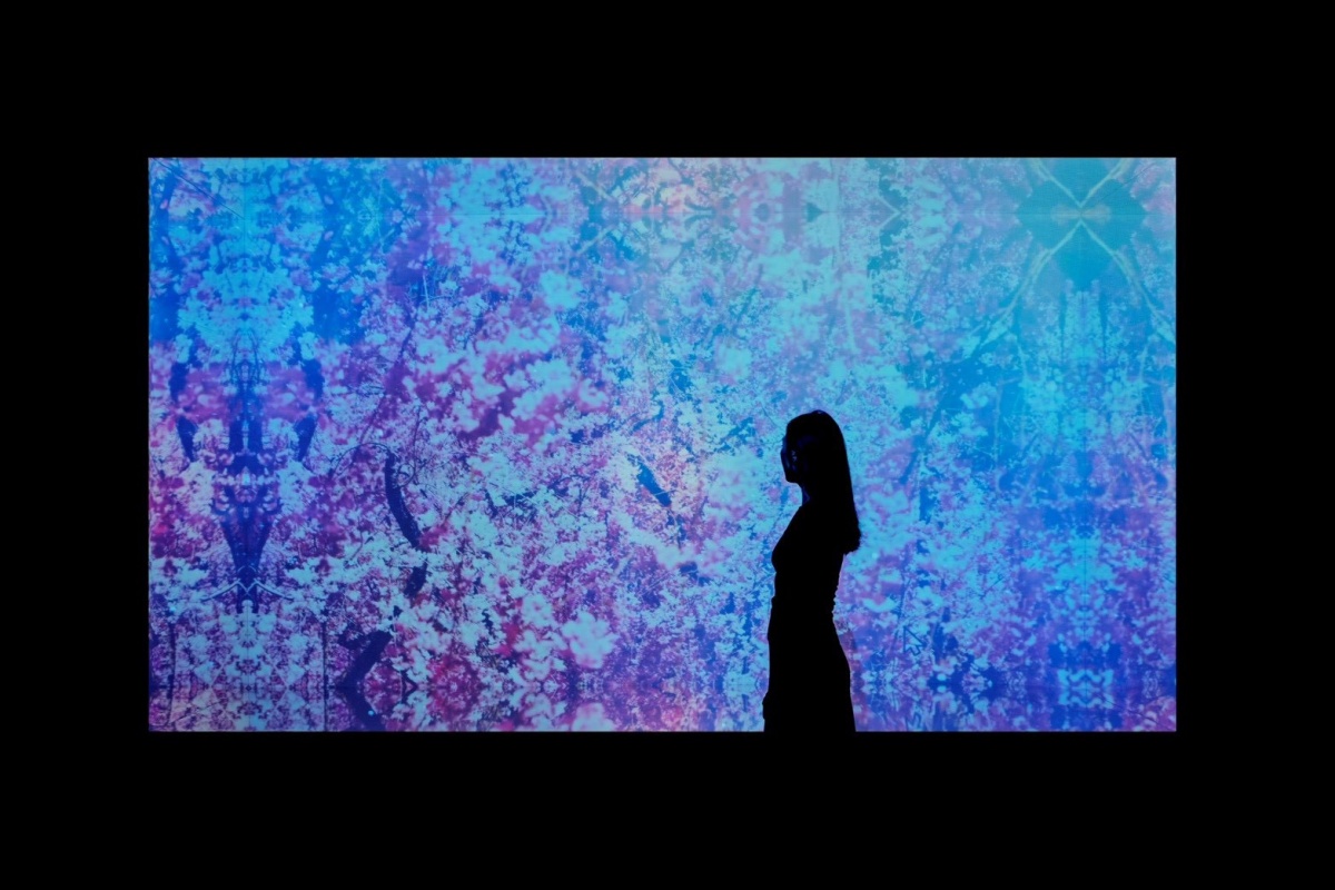 京都展人氣最高的展區《深淵彼岸的夢》,一踏入便被盛開的花朵包圍,濃烈絢爛的色彩在光影變化下各顯姿態,令人目不暇給;隨後映入眼簾的是由鏡面與巨型螢幕構成的720度全景空間,如雨般落下的櫻花、稍縱即逝的煙火、生生不息的蔚藍海洋等不斷變換的場景,讓觀眾彷彿走入無限延伸的深淵,沉浸在跨越生死、前所未見的彼岸世界。