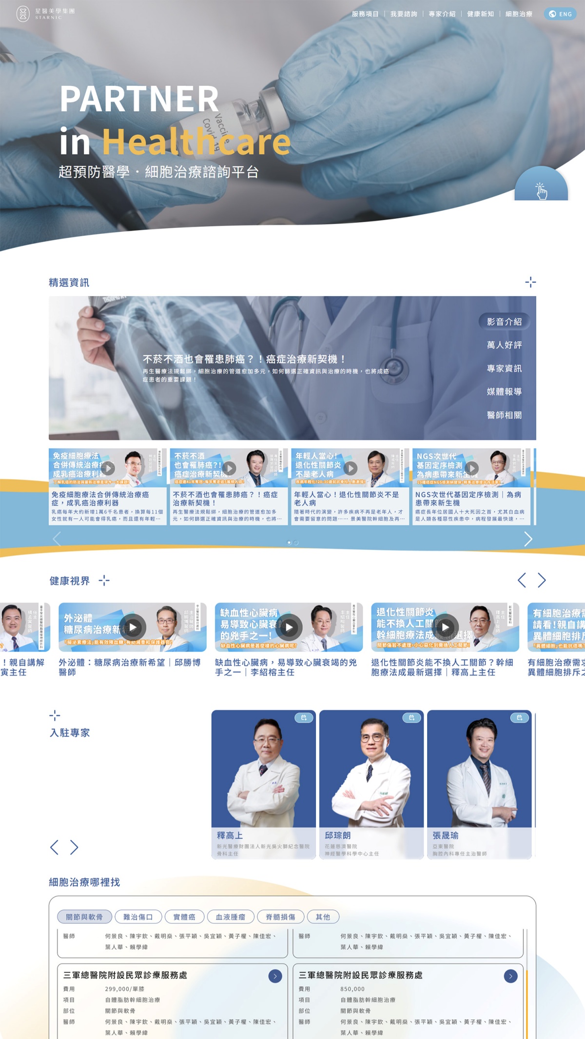 「超預防醫學」主張將健康管理的時間軸前移,在疾病尚未成形之前,透過風險分層與早期介入,讓民眾能及早發現、及早治療,早在 2023 年由星醫美學集團推出的【超預防醫學 • 細胞治療暨台灣百大認證名醫線上諮詢平台】,即集結台灣各界的優秀醫療專家,合作醫師包含衛福部官網「再生醫療哪裡找」核定再生醫療技術執行計畫之醫師及各科醫療專科醫師,線上即可便利地完成預約與健康諮詢,希望能讓民眾在身處資訊爆炸的時代,可快速找到專業的「第二意見」,了解關於再生醫療的正確資訊。