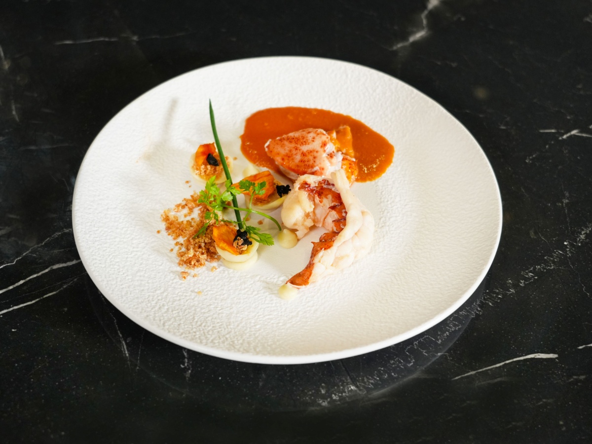 遠雄悅來大飯店於11月25日舉行第一場品酩餐酒會,由Loïc Le Bail主廚親自掌舵,演繹台法廚藝精髓之作,現場展演經典拿手料理「蒜香微潮.龍蝦頌歌」。以奶油香煎的龍蝦鮮甜彈牙,搭配風乾牛番茄、酥脆避風塘蒜酥,佐法式油封蔬果醬,層次細緻、香氣濃郁。