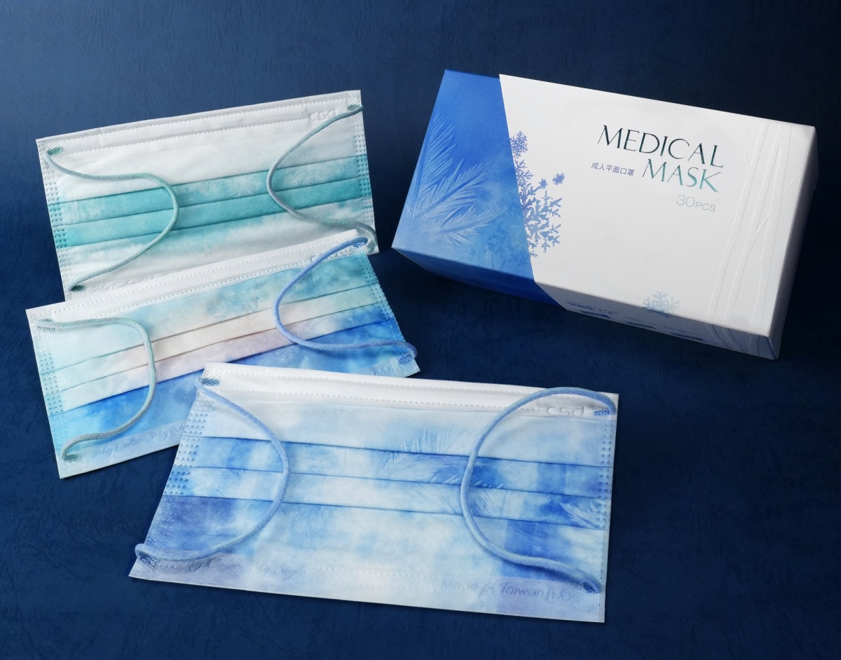 因應此需求,CSD推出冬季限定「雪花系列」成人平面醫療口罩,以輕盈透氣材質結合柔霧色設計,兼顧長時間配戴的舒適性與防護力。每盒三款設計各十片,共三十片,建議售價 350 元。