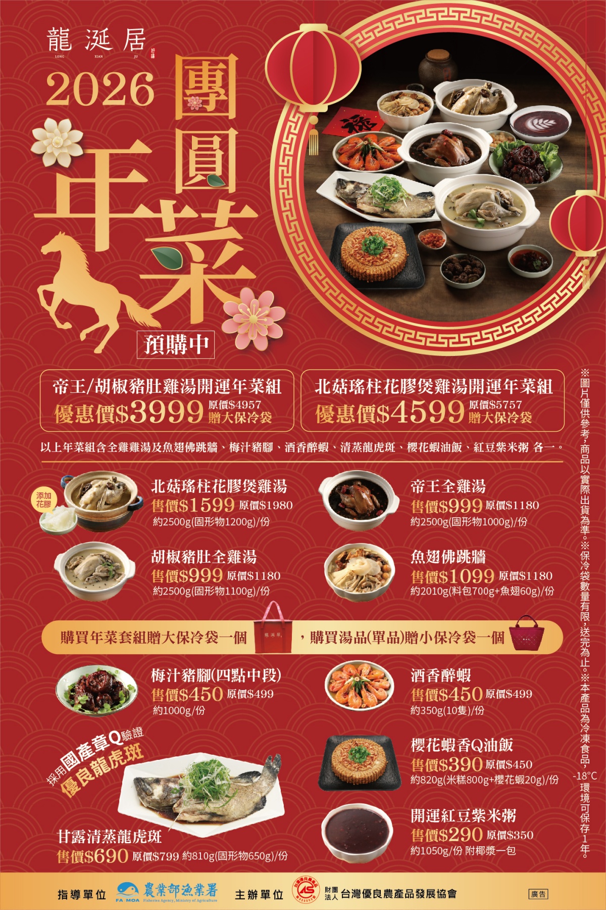 知名養生雞湯連鎖品牌龍涎居,此次與農業部漁業署、財團法人台灣優良農產品發展協會攜手合作,正式宣佈將鮪豐水產提供的擁有產銷履歷國產章Q驗證優良龍虎斑導入2026年菜系列,為廣大消費者打造冬季暖心、安心兼具的團圓新滋味。