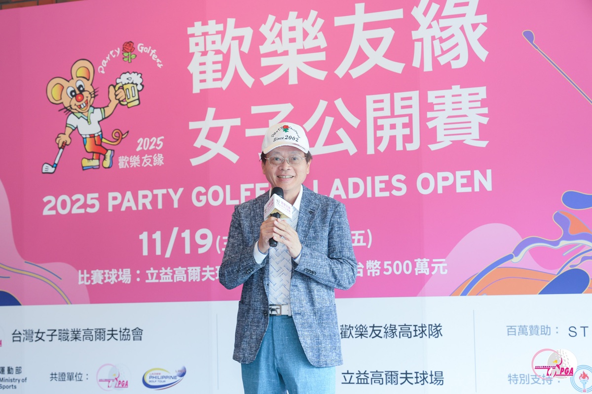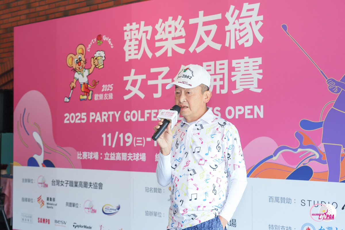 立益球場董事長蘇慶琅也在隨後上台致詞:「首先感謝歡樂友緣球隊長期以來冠名贊助這項比賽,這對台灣高爾夫而言是一段相當難得的歷史,不僅有眾多廠商長年支持,同時也帶動高爾夫運動持續發展,回顧台灣高爾夫發展史,這些贊助單位確實帶來莫大貢獻,其精神就如同這些企業的經營精神,永遠追求卓越!選手們也是如此,期勉大家積極發揮,挑戰自我,也為社會做出貢獻。」