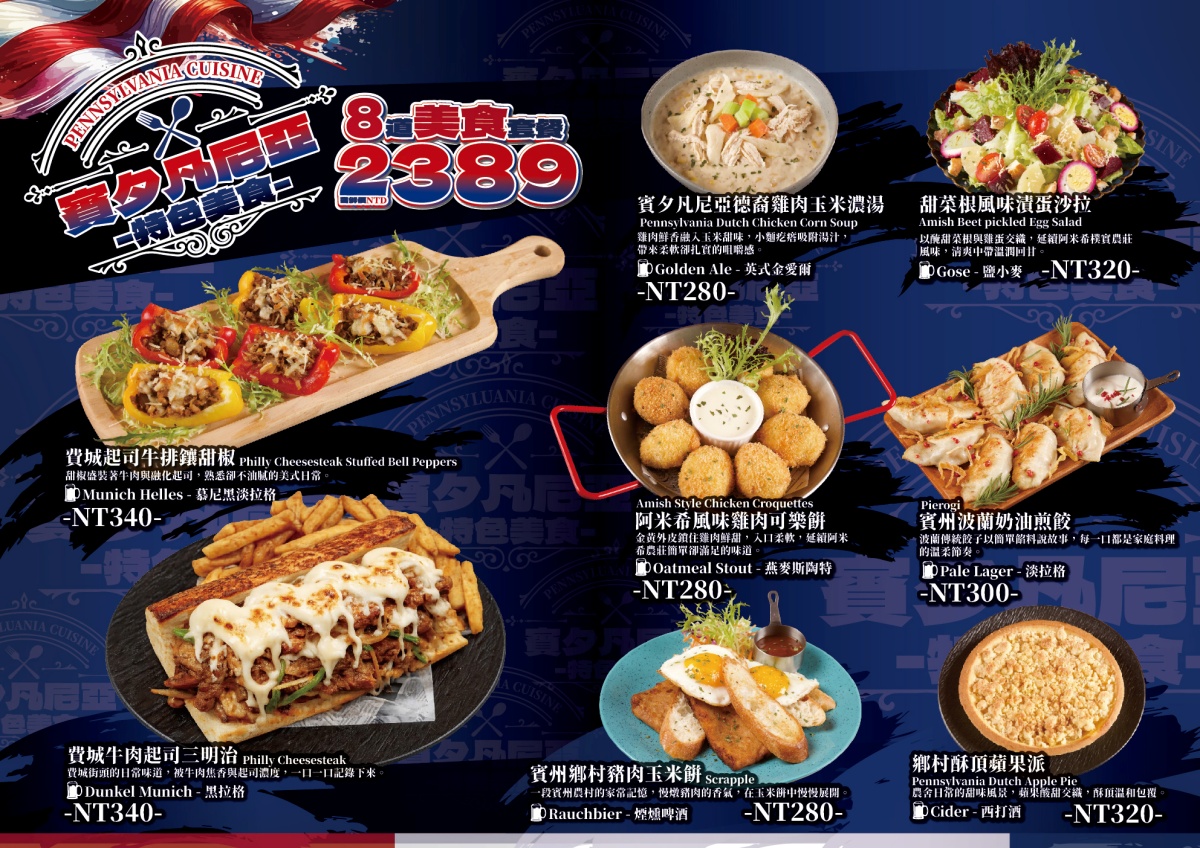 這一季,ABV 把目光放在美國東岸的賓夕凡尼亞州,從當地人的日常飲食出發,將那些陪伴許多家庭成長的料理,用餐酒館的方式呈現在台北。這份主題菜單,呈現的是賓夕凡尼亞州餐桌上常見的料理樣貌,以及當地人習慣的用餐節奏。