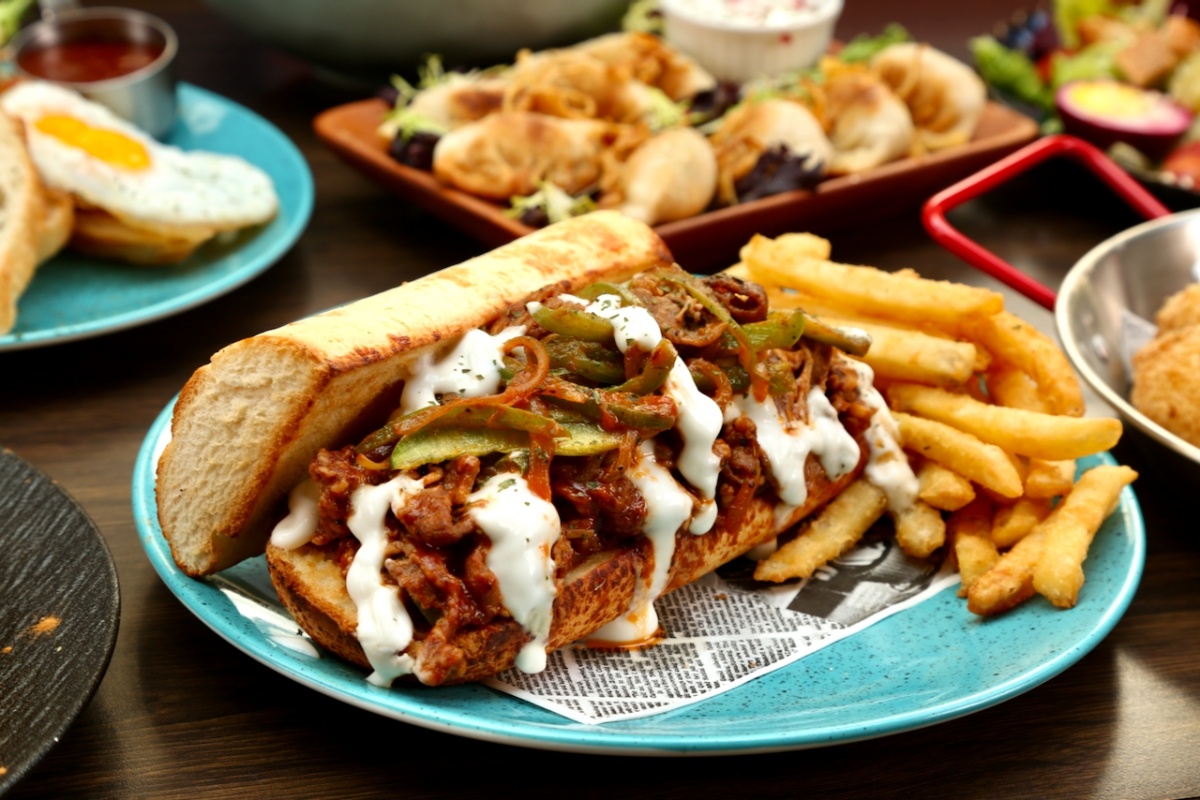 菜單裡最熟悉的身影,來自費城的起司牛排三明治。費城起司牛排三明治(Philly Cheesesteak) 最早出現在 1930 年代的費城街頭,當時只是把薄切牛肉與洋蔥在鐵板上快炒,夾進麵包裡,成為方便又有飽足感的一餐,後來才加入起司,逐漸成為今天大家熟悉的樣子。
