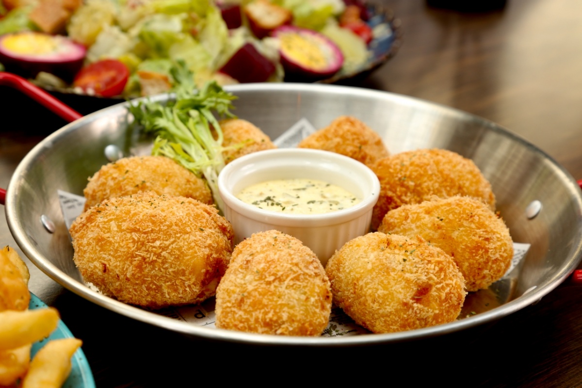 同樣來自家庭廚房的,還有 阿米希風炸雞可樂餅(Amish Style Chicken Croquettes)。這道料理的起點很單純,是把家裡剩下的熟雞肉重新處理,不浪費,也能讓一家人吃得飽。將雞肉切碎後混合牛奶、奶油與香料,裹粉油炸,外層酥香、內裡柔軟,是許多家庭在週末或節日餐桌上會出現的料理。