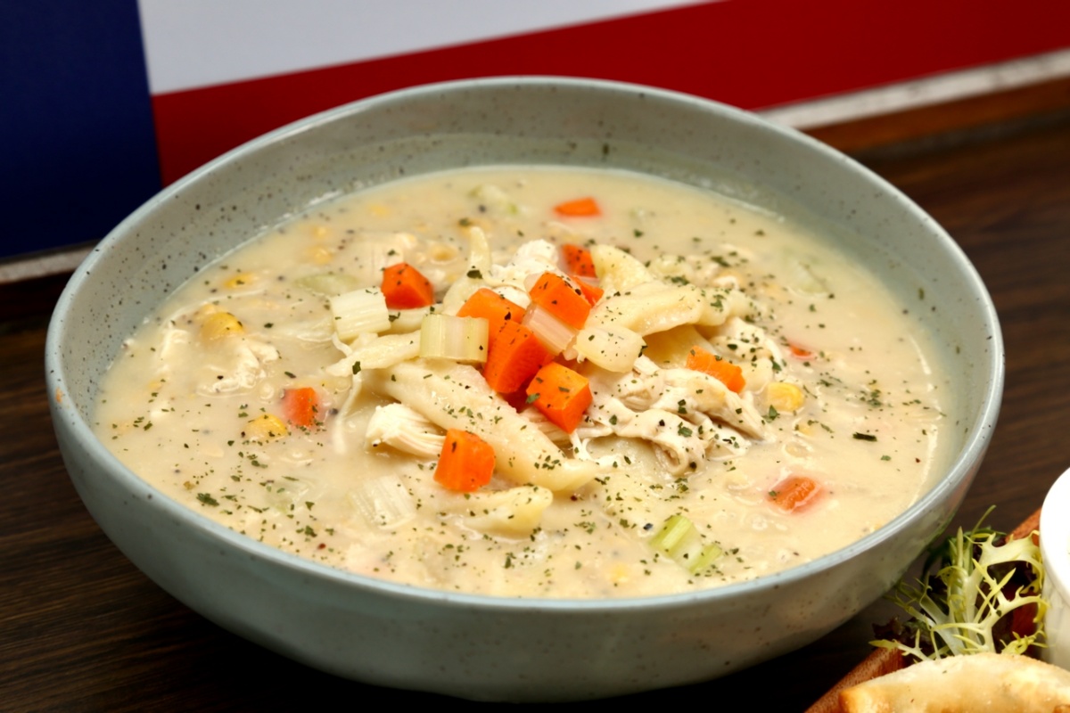 除了主食,餐桌上也少不了溫熱的湯品。賓州德式雞肉玉米濃湯(Pennsylvania Dutch Chicken Corn Soup) 是許多賓夕凡尼亞州家庭從小喝到大的味道。這類濃湯源自以簡單食材慢慢熬煮的飲食習慣,雞肉、玉米與蔬菜自然融合,味道溫和,卻在餐桌上很有存在感。