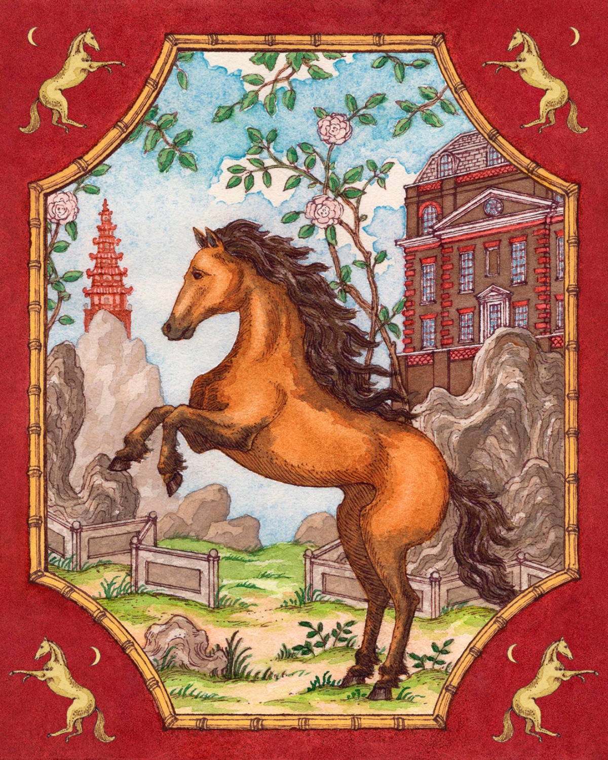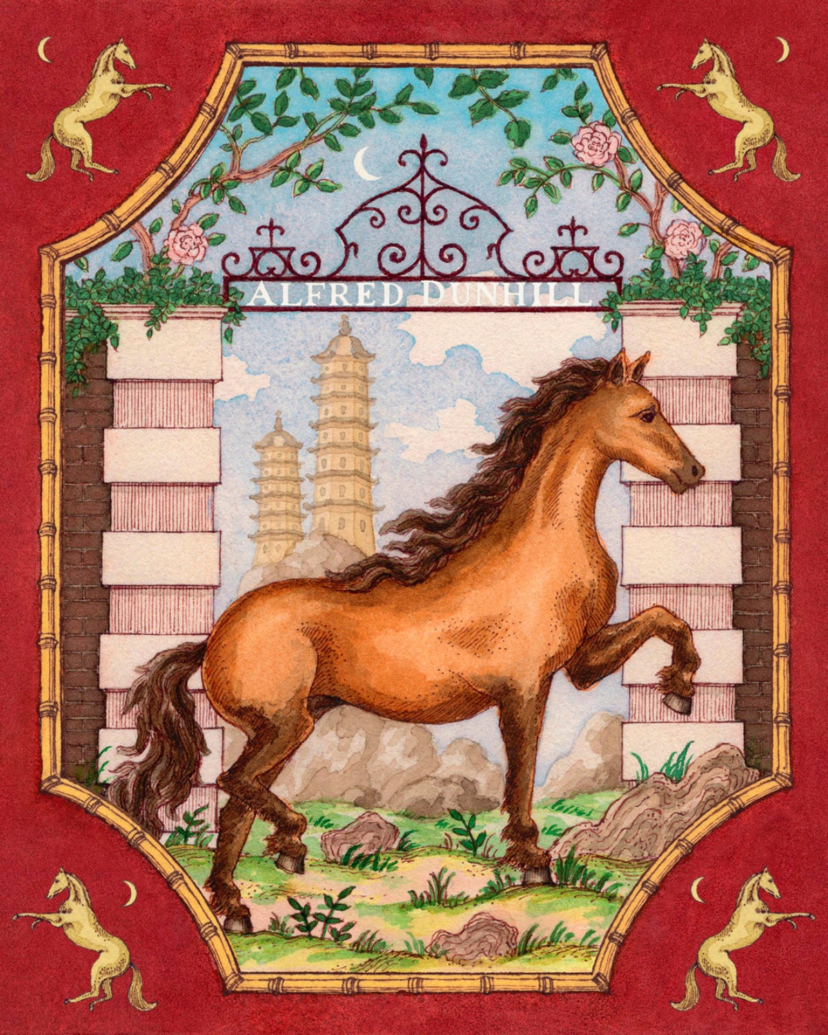 與上述單品一同亮相dunhill 2026馬年新春限定系列的,還有兩幅專為佳節創作的精美主題插畫,插畫精心描繪馬於中國名山古剎間優雅踱步, 與在倫敦dunhill旗艦店Bourdon House前的昂首英姿。畫面細節華美繁複,恰與系列單品的卓越匠藝相映生輝。