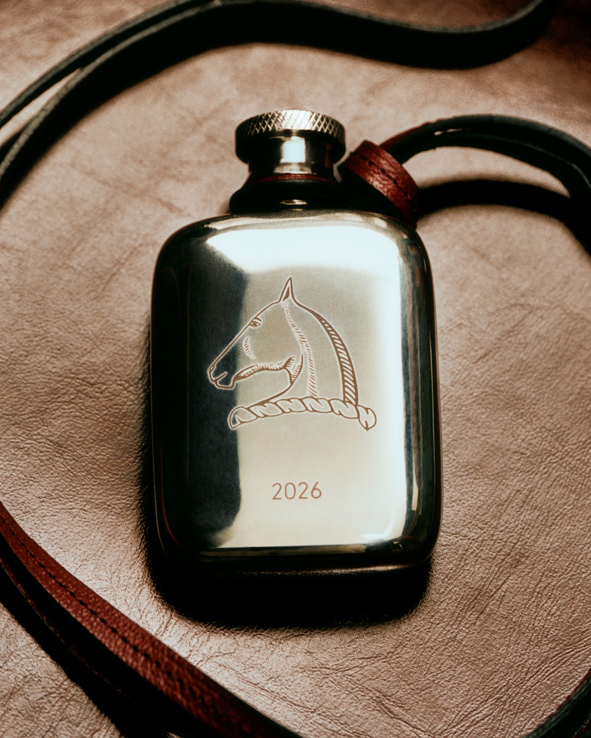 系列中亦囊括多款私享配飾單品,為節日備添儀式感。於英國精製的迷你馬首酒壺,採用現代錫鑞材質,飾以全新鐫刻圖案,配上深紅色皮質掛繩,以便隨身攜帶。產自西班牙的植物鞣製山羊皮雪茄盒,則使用濕式塑形工藝製成,輪廓精準俐落,兼顧各項需求-外形幹練實用,觸感低調奢華,亦能在歲月流淌中沉澱出獨特韻味。