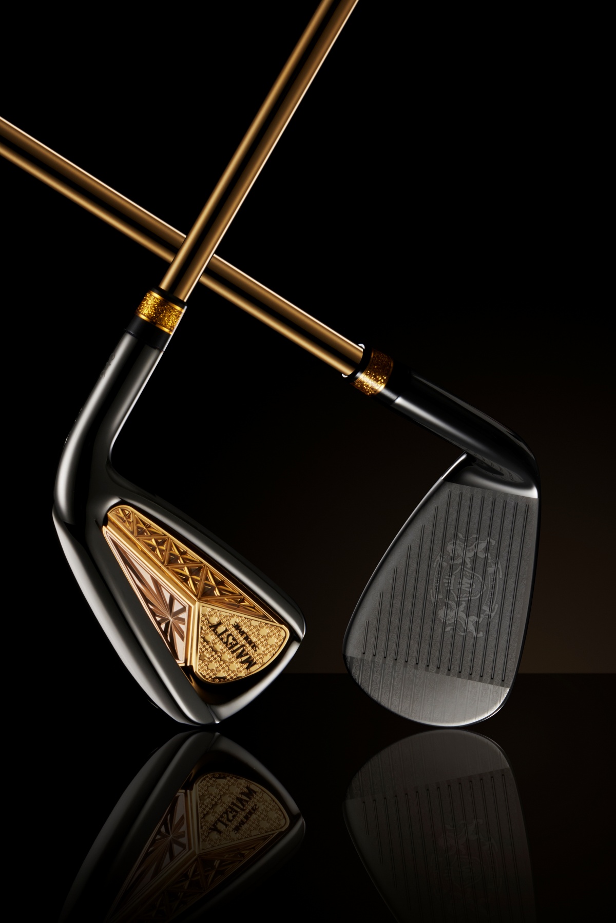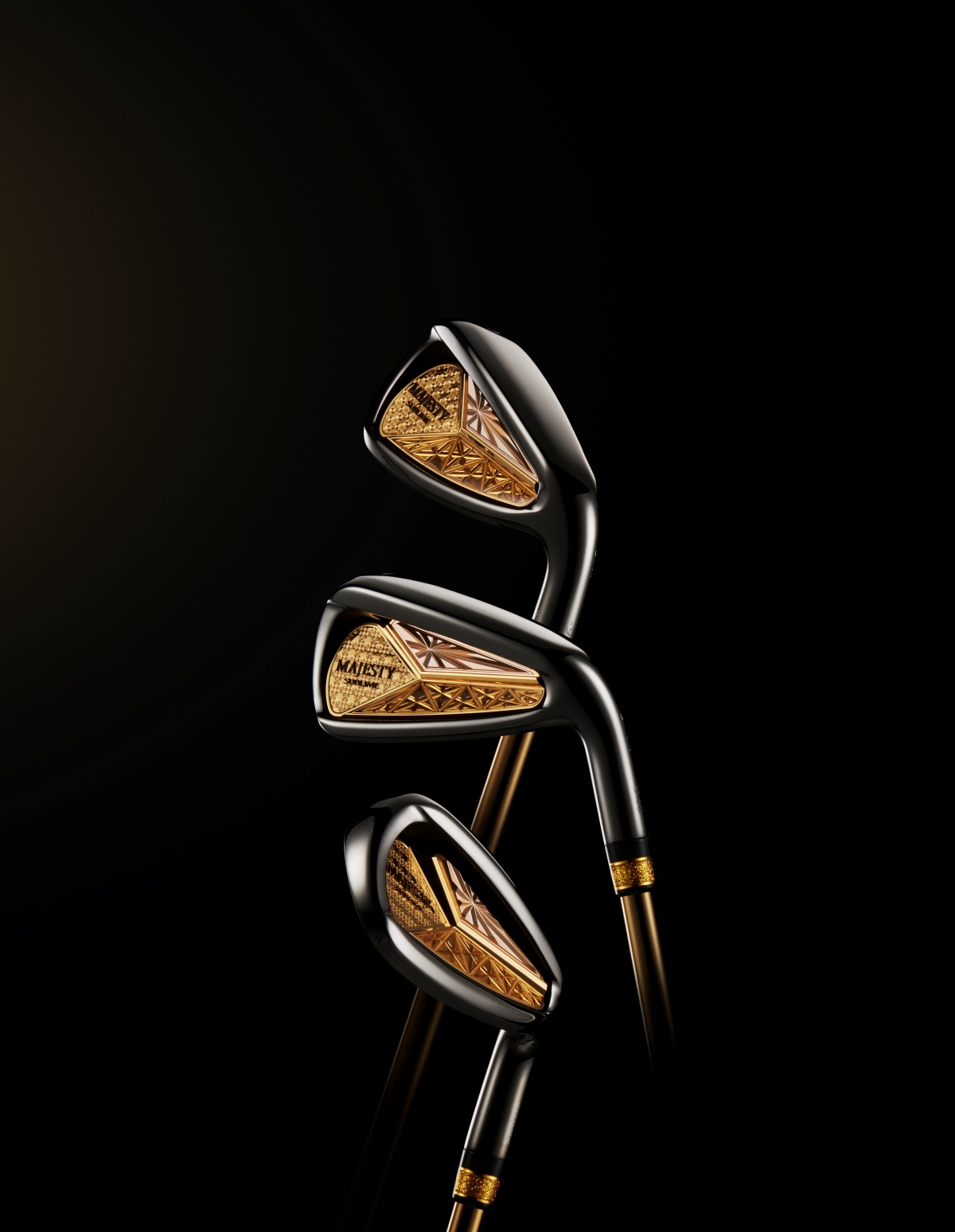 長鐵桿 (I5~I7) 採用「強力麻鋼 C300」,同時施加熱等靜壓處理 (HIP) 提高材質密度、強度及均質性,以實現最強能量轉換。短鐵桿(I8~PW) 桿面採用高強度「Custom 450」桿底則鑲嵌高密度鎢鋼,平衡遠距表現與後旋控制,尤其沿桿面凹槽線輪廓精準雕琢均勻1.6mm超薄桿面,創下MAJESTY歷史最薄紀錄,也帶來靈敏擊球反應與絕佳手感。鐵桿外觀均以鍍鉻DLC塗層,賦予表面類鑽石級的硬度,不僅帶來金屬閃耀光澤,同時提高抗磨損性能。