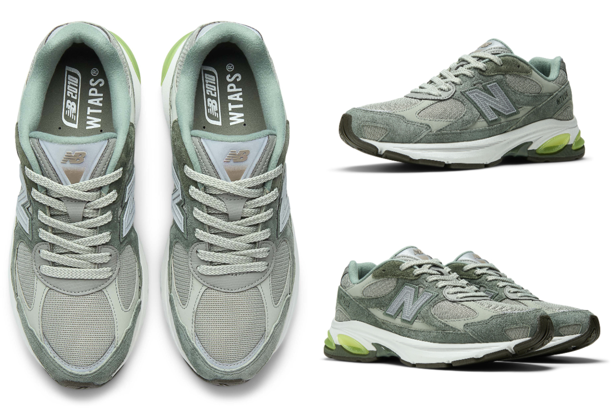 鞋身以 NB 標誌性灰階鋪陳,ABZORB 緩震區塊注入螢光綠點題;後跟鐫刻「WTAPS」、鞋側配置 WTVUA 圖樣,內裏鞋墊印上雙方 Logo,從視覺到腳感都呼應 WTAPS 的工裝語言與 NB 的機能本色,實穿與造型一次就位。