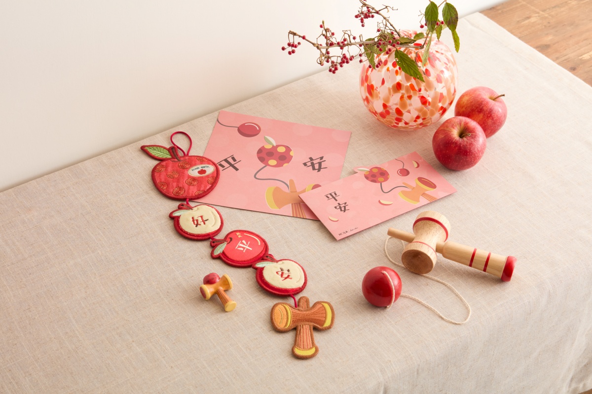 其中,象徵財庫「財源滾滾」的小豬撲滿及呼應馬年「馬到成功」的搖搖馬,自上市以來即成為人氣話題,從抱枕、斗方到布紅包袋無一不熱賣!朱緹更巧妙將劍玉的小球轉化為蘋果,傳遞「平平安安」的祝福;蝴蝶炮與仙女棒則象徵過年的熱鬧氣氛與新年的希望;小雞頂著金桔的筷架與吊飾則以「積極」諧音巧思,將祝福藏進生活細節。透過童玩的視角,讓過年回到記憶中喜氣洋洋的模樣。
