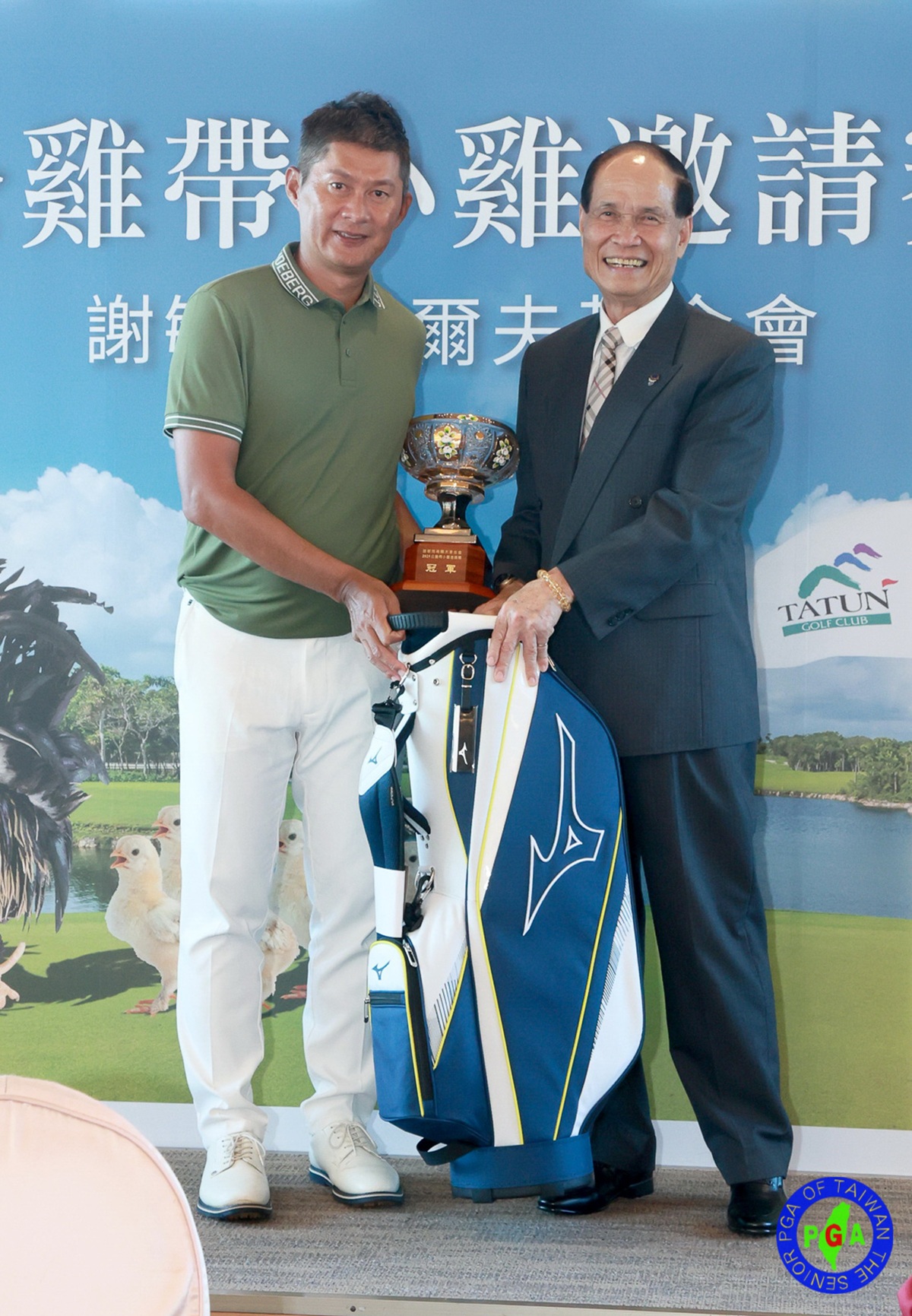大屯球場董事長吳萬得表示,大屯球場協辦TSPGA賽事已經20年,在這漫長的日子裡,在謝老師認真努力、出錢出力的付出之下,公雞帶小雞賽事強度越來越高,也透過這場賽事的傳承宗旨,培育出不少現今在一級賽場上的優秀選手。而大屯球場也因為年年協辦這場賽事,讓球場整體設施提升進步。「大屯球場會繼續支持謝老師,並一直協辦這場別具意義的賽事。」吳萬得說道。