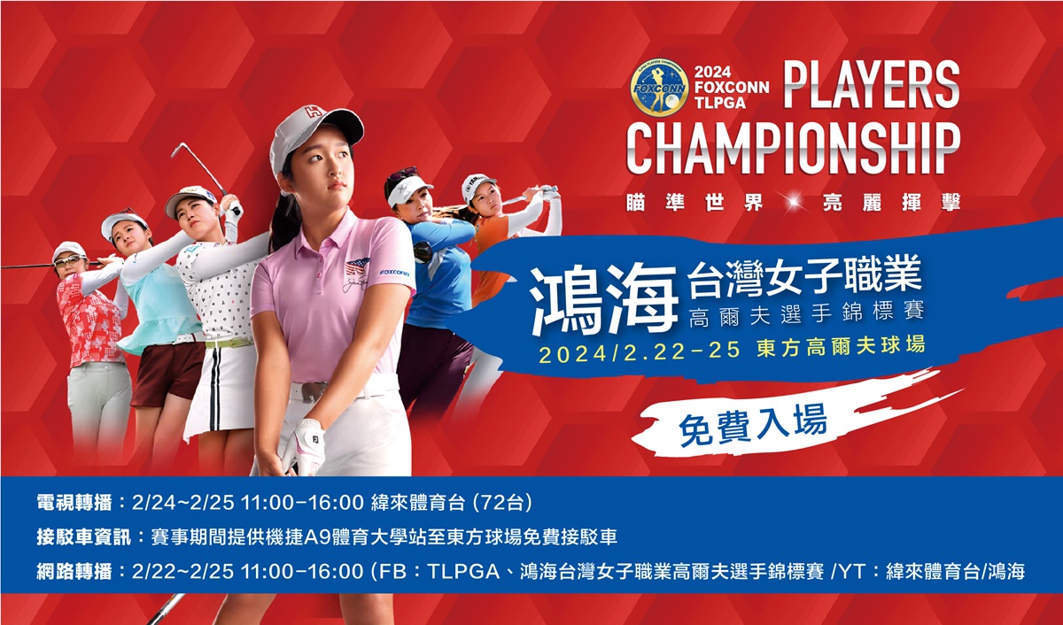 由台灣女子職業高爾夫協會主辦、鴻海科技集團冠名贊助的「2024鴻海台灣女子職業高爾夫選手錦標賽」即將於2/22(四)至2/25(日)在東方高爾夫球場舉行。主辦單位今日公布參賽選手名單,包含台灣在內,總共有來自7個國家、90位菁英選手出線!本次賽事預計將有5位世界前百名選手與日、韓、台、泰、澳、中6大巡迴賽曾奪冠的好手,以及2023年中巡、泰巡賽獎金后來台挑戰,共同競逐高達14分的冠軍世界積分,這也將是台巡單獨認證賽事史上最高,僅次於日本正巡賽(15分)以及韓巡賽(19分)。