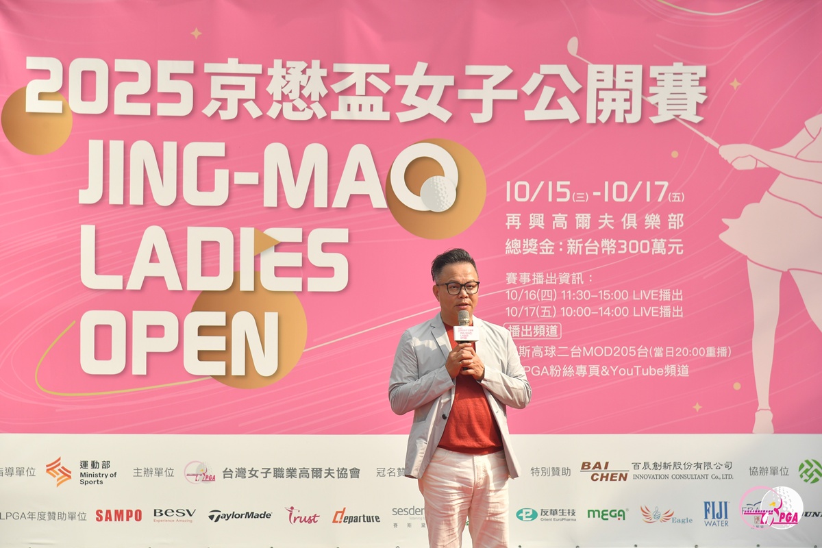 TLPGA台灣女子職業高爾夫協會理事長劉依貞也隨後上台向大家致意:「京懋建設四年來持續支持TLPGA,在此我要再次感謝京懋建設范秉豐執行長的全力相挺,讓台灣女子選手們有一個向上提升,賺取世界積分的舞台。