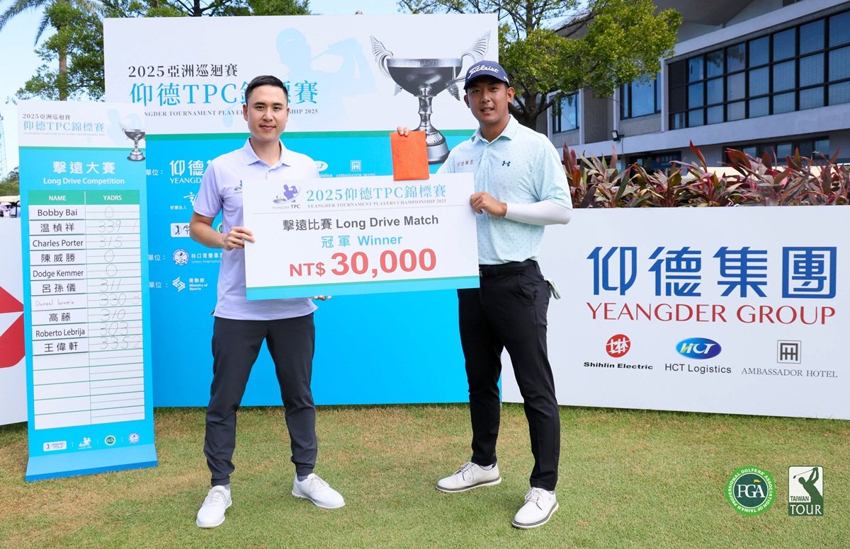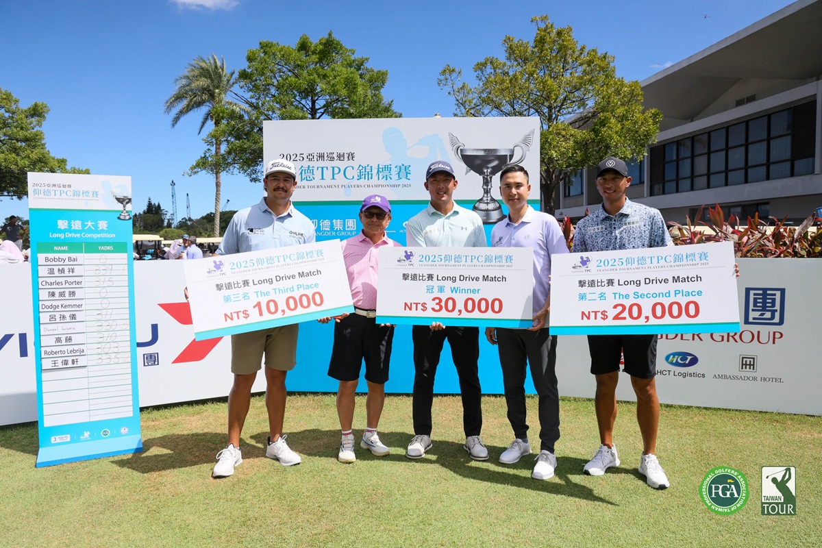 另外,大會也循往年慣例,在配對賽下場前舉行職業選手擊遠比賽,將取開球距離最遠的前三名給獎,分別是冠軍獎金新台幣3萬元丶第二名2萬元丶第三名1萬元。