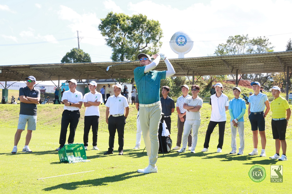 去年亞巡賽獎金王美國選手卡特林(John Catlin)今天上午在記者會前,為參加台青盃的11個球場所屬培訓共10位青少年選手,進行教學活動,卡特林為青少年選手展現示範各種不同的球路,以及揮桿的一些細節,還教導了面對挑戰時的心態丶享受高爾夫的魅力與自我突破的成就感,讓年輕球員受益不少。