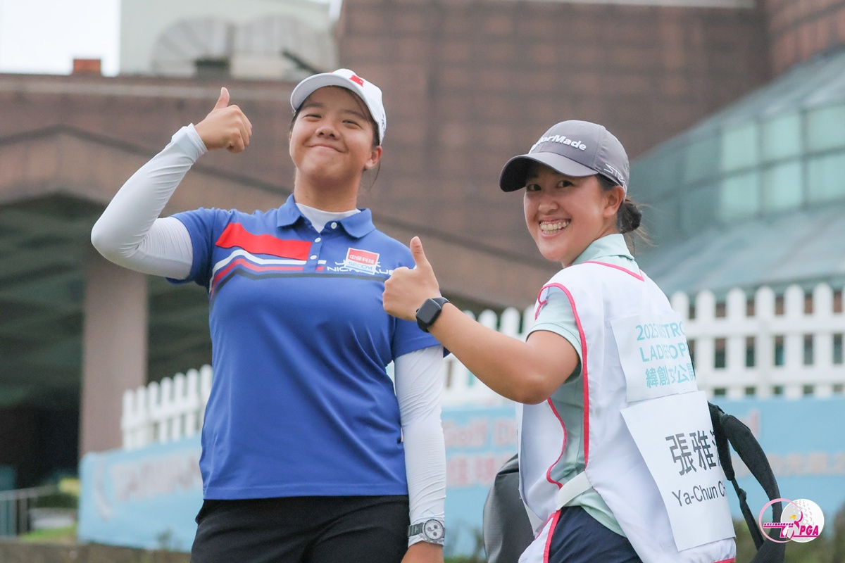 2025緯創女子公開賽於今日10/25週六進行第一回合補賽,昨天尚未完賽的全體參賽選手趁著天氣趨於穩定上場趕進度,同時也在絕佳的球場狀態下積極進攻。本日打足18洞的泰國選手布薩巴甘(Nook Sukapan)靠著7鳥1柏忌的好表現,在群雌中脫穎而出暫列首位,而微笑球后曾雅妮也不遑多讓,即便傍晚前仍剩四洞尚未完成本回合比賽,但自早上就開始展現壓倒性演出,特別是第四至第七洞連續抓鳥,目前完成14洞後已豪取-6佳績,明日有極大機會與布薩巴甘共享后座前進最終回合。
