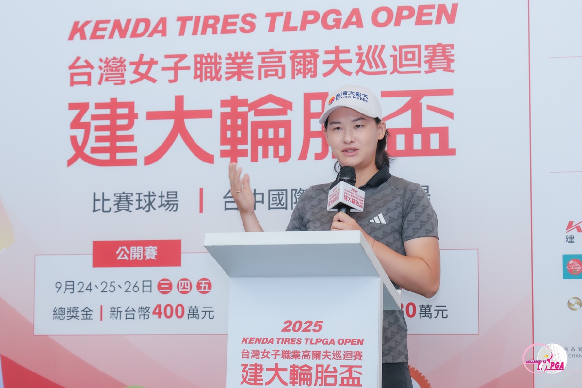 本屆選手代表李旻也在記者會尾聲上台演說:「這場比賽不僅是台灣女子高爾夫重要的舞台,也是我們選手互相切磋,共同成長的珍貴機會。每一位選手從踏上梯台揮桿開始便進入一段新的旅程,就像輪胎的每段旅行軌跡,透過與地面的接觸真實回饋路感,而我們則透過腳底感受著每一步,隨著雙腳的力量反映著我們在場上的專注與回饋,每一次的揮桿皆仰賴雙腳的穩定,唯有踏實,才能將力量完整的傳遞,把球送往理想的方向。因此我相信無論是在球場上或人生道路上,眼前無法永遠一帆風順,但只要我們擁有像建大輪胎一樣的抓地力與耐力,將能克服每一段挑戰!」