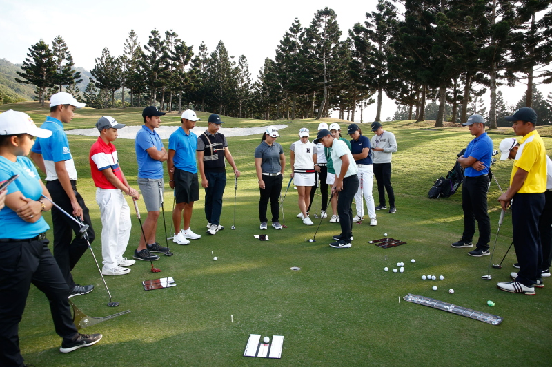 P這次訓練營天氣很好,我們教了很多,學員們也都很開心,感覺有滿載而歸。第一天晚上我和徐薇淩各率領幾位學員分隊比切球,一直比到晚上,還打開手機燈光來照亮洞口,結果徐薇淩那隊贏了。我和學員們都不曾這麼做,那是很難忘的經驗,感覺能讓他們找回對高爾夫的熱情。太太也跟我說,當課程結束她把學員照片的易拉展送給每個人時,他們笑說那是畢業證書。有學員已經在問明年能否在來參加,也有學員覺得他們學到比預期中更多的東西。這代表我們所做的,他們感受到了。這一次我們確實教了很多、講了很多,我不奢求他們通通吸收,只要學到其中一兩點,對於他們的未來有幫助,那就值得了。