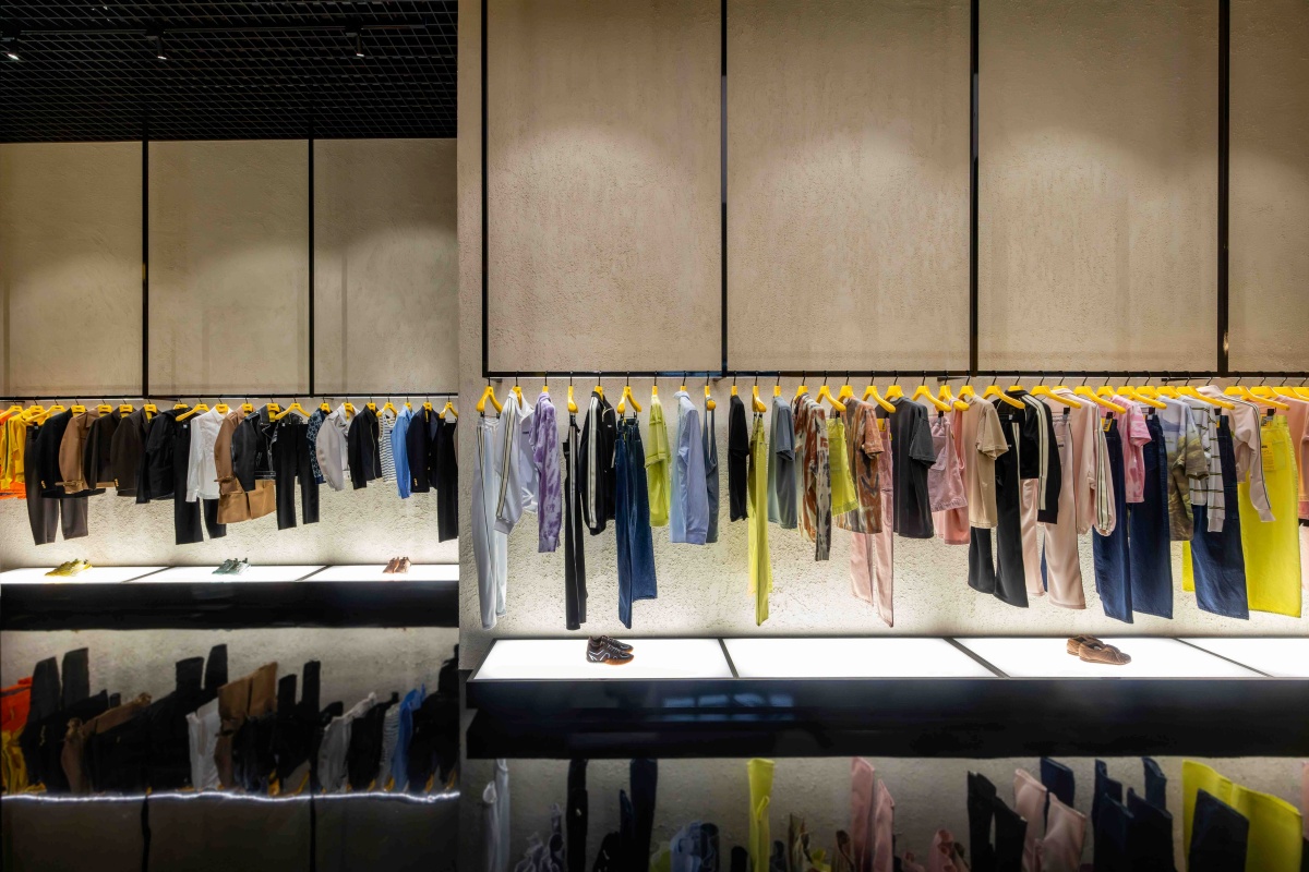 以品牌標誌性色彩「Tiger Yellow」為起點,全新Onitsuka Tiger微風南山概念店透過空間設計重新詮釋品牌語彙,於色彩、材質與結構之間建立鮮明而一致的視覺識別。