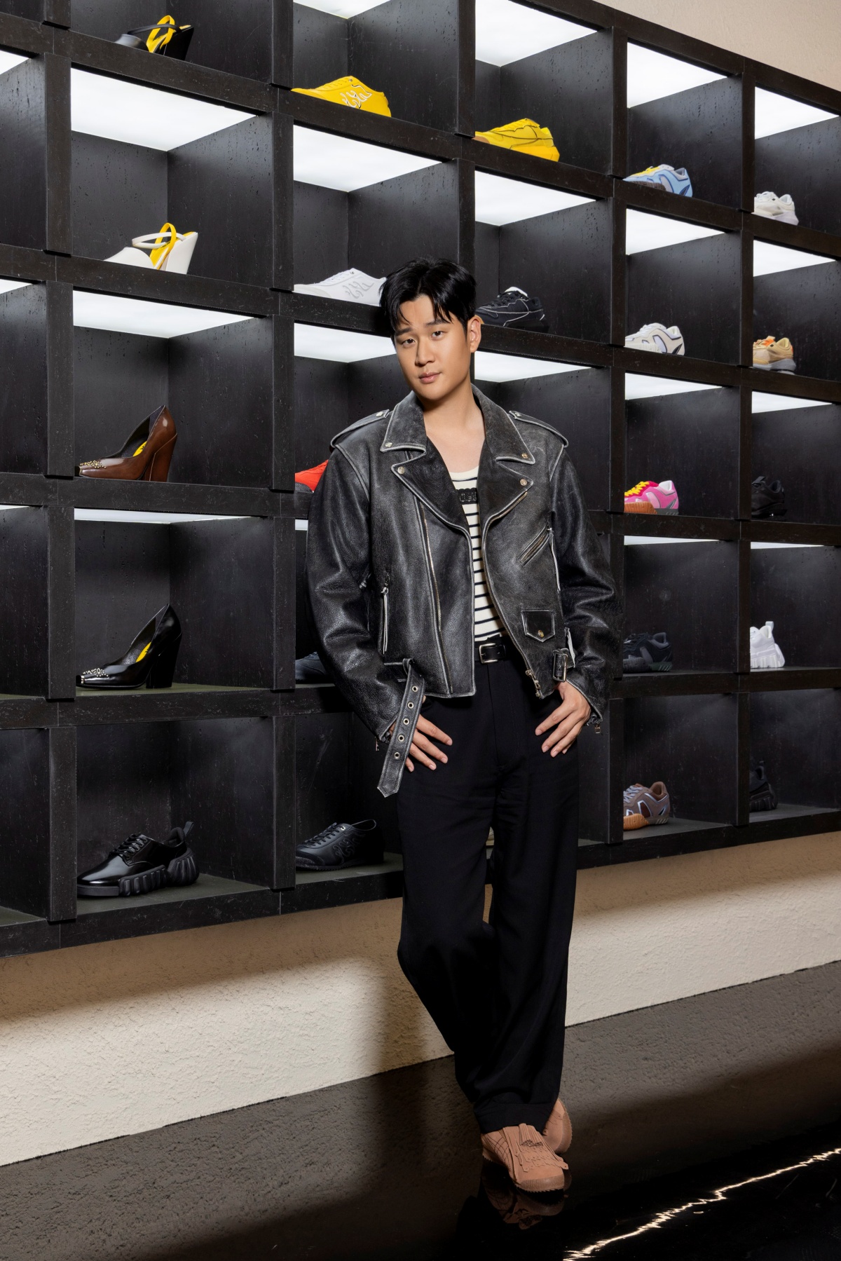 開幕當日,歌手周興哲以極簡俐落的輪廓演繹 Onitsuka Tiger 2026 米蘭時裝週的都會潮流語彙。身穿以牛皮仿舊處理打造的黑色騎士夾克,搭配寬鬆剪裁的黑色長褲,透過材質層次與輪廓比例展現率性風格,並以棕色 MEXICO 66 FRINGE 鞋款作為造型亮點。鞋面結合三層流蘇與穗飾設計,隨步伐自然擺動,為整體造型注入動態節奏與復古質感,展現品牌經典鞋型於當代語境下的再詮釋。