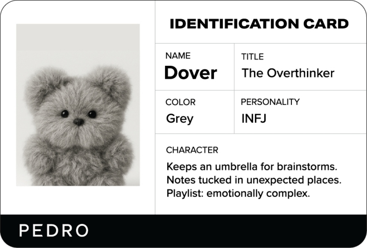 Dover 是那個總能看得更遠的人。以冷靜的洞察力與遠見,將複雜情感化為清晰思路,冷靜、細膩,卻不失溫度。身為 INFJ,Dover 不喧嘩,卻總能在關鍵時刻引領方向,以靜謐力量開啟新篇章,是團體中的定心丸。
