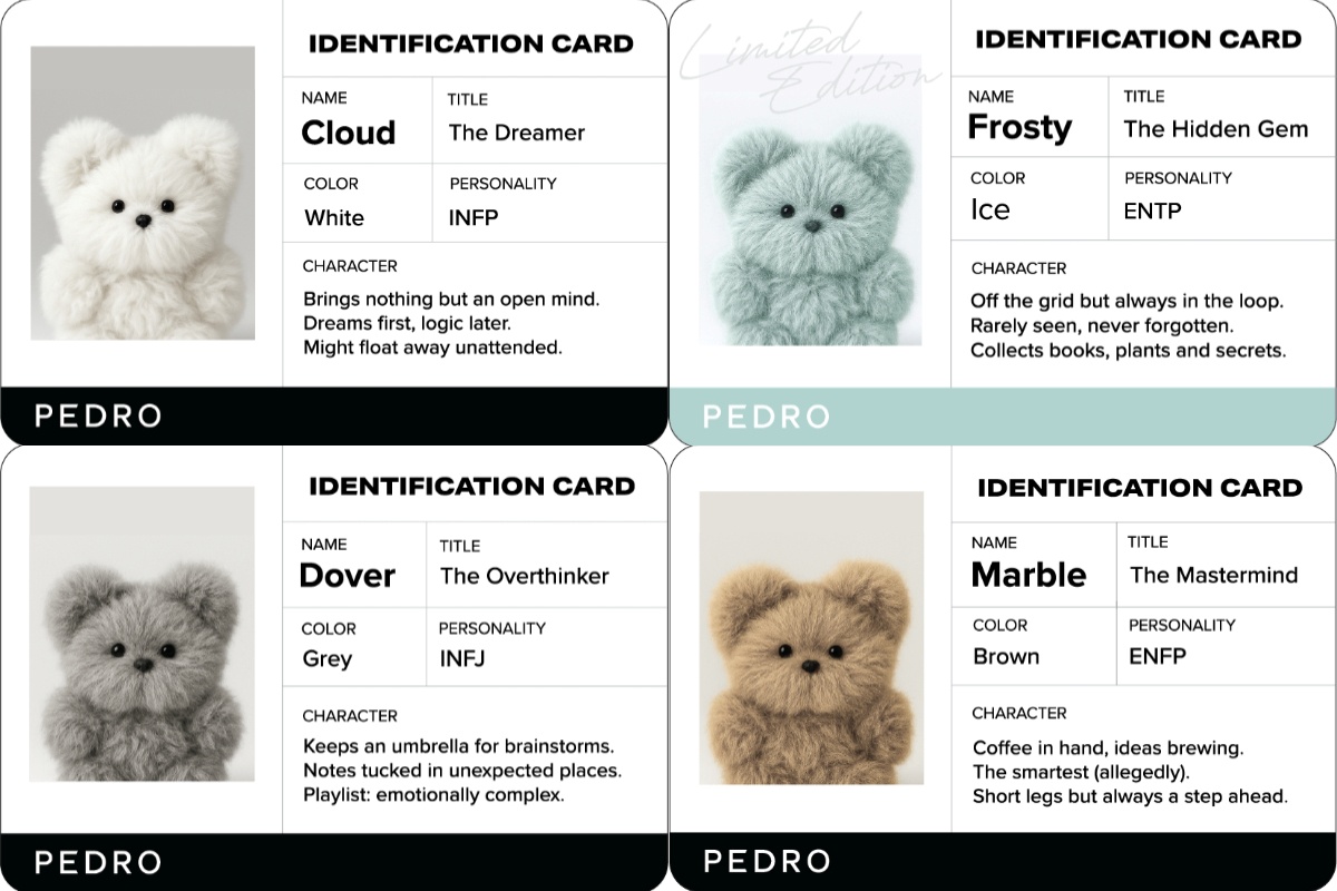 - 獨特個性設定:每張卡片皆附角色名稱、稱號與 MBTI 性格,打造專屬收藏感
