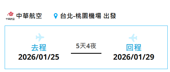 不含項目:不含國際機票、不含北高來回接駁、不含小費