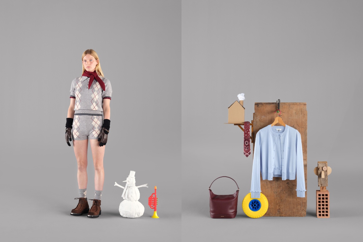 女裝系列以節慶童趣為靈感,融合冬日暖意與法式優雅,譜寫假期摩登序曲。格紋套裝展現俏皮氣息,搭配圍巾與手套細節,營造溫暖層次感。駝色長大衣結合挺闊剪裁與柔和線條,散發自然優雅;滾邊外套與襯衫式洋裝則以細節呼應節慶氛圍。整體色調以霧感駝、暖棕與酒紅為主,巧妙平衡學院風與都會氣質,為節慶注入柔和自信光彩。